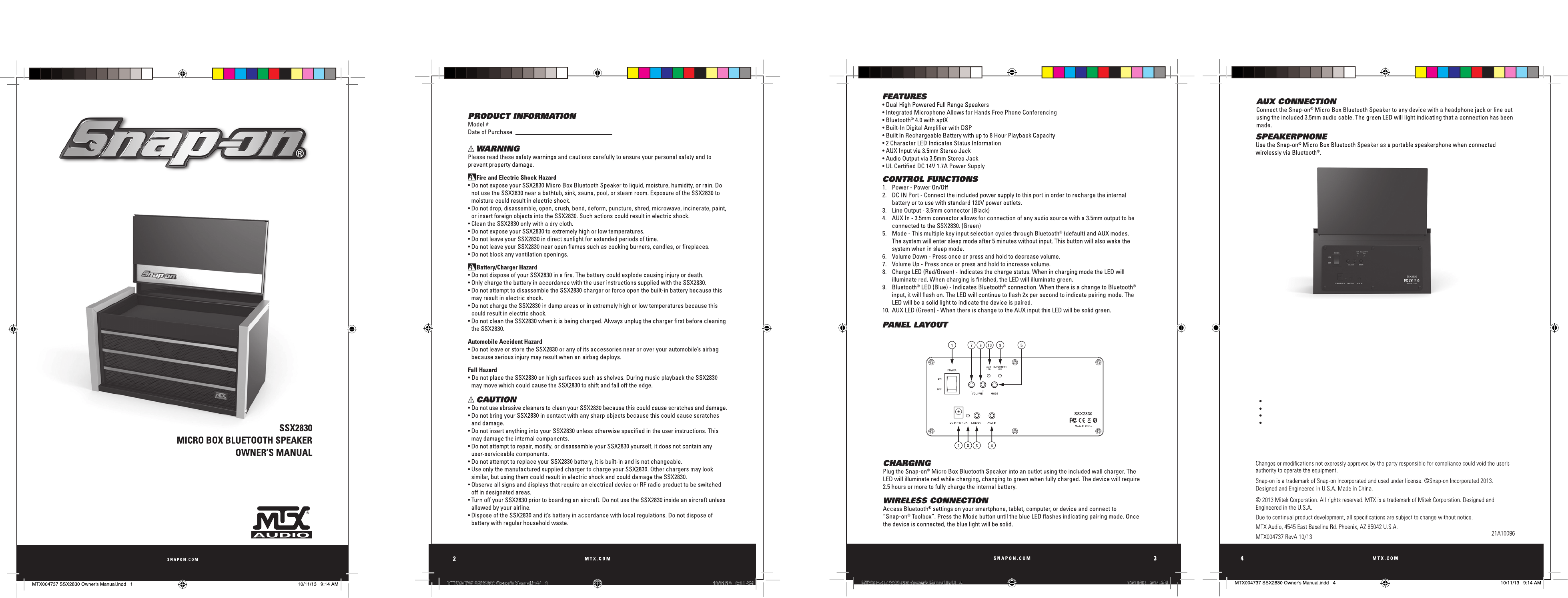 Mitek SSX2830 Bluetooth Speaker User Manual BT 100 A1 20131012