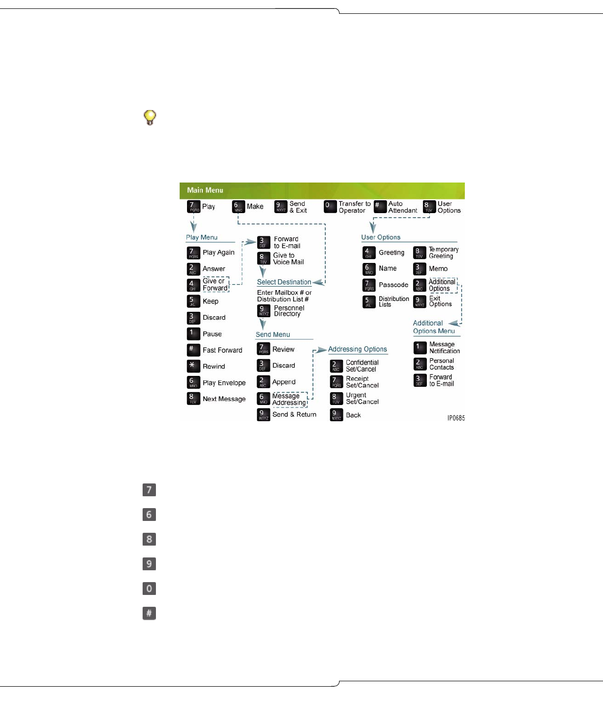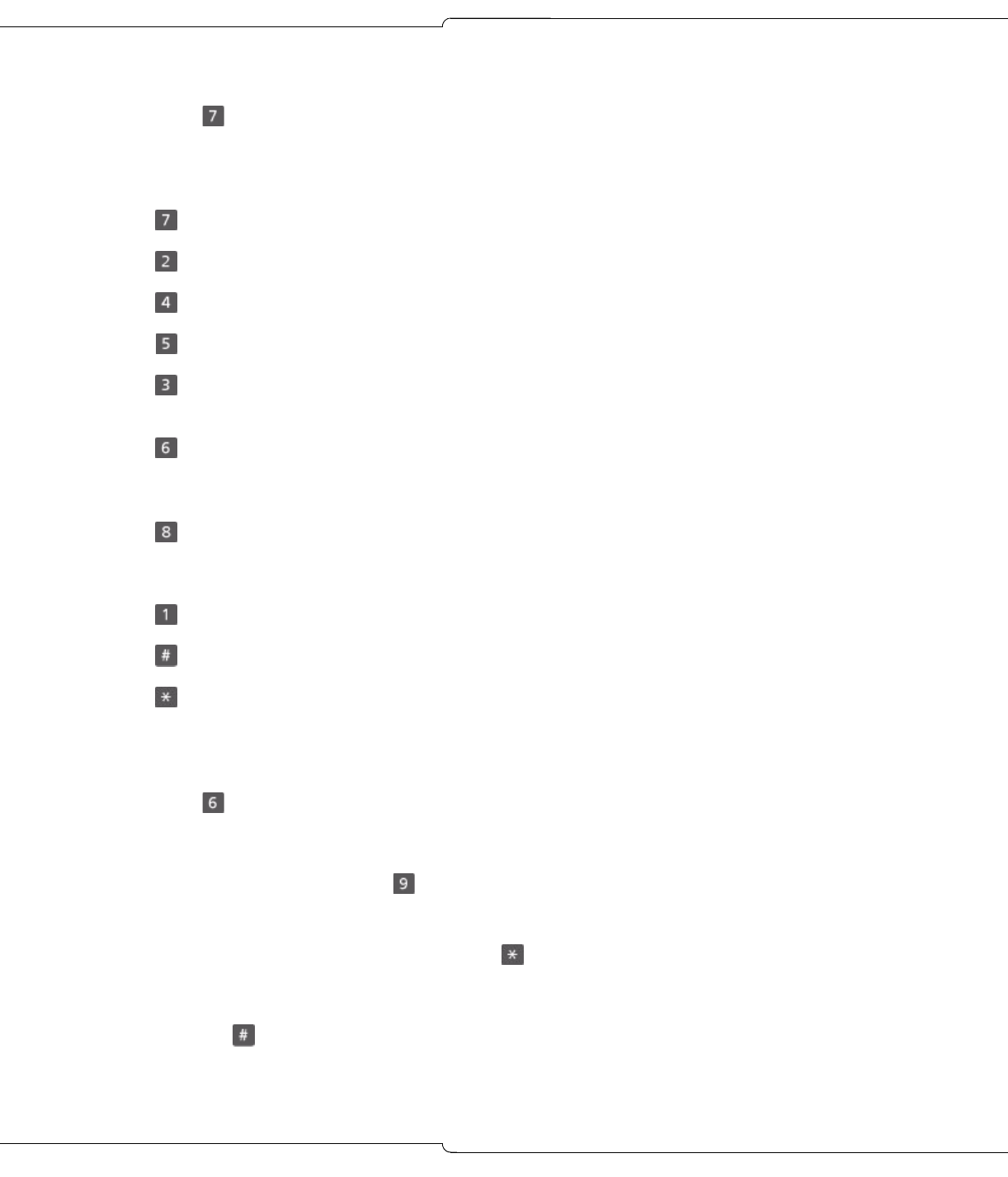 are listening to a message. Use these keys to replay information you missed, to pause a