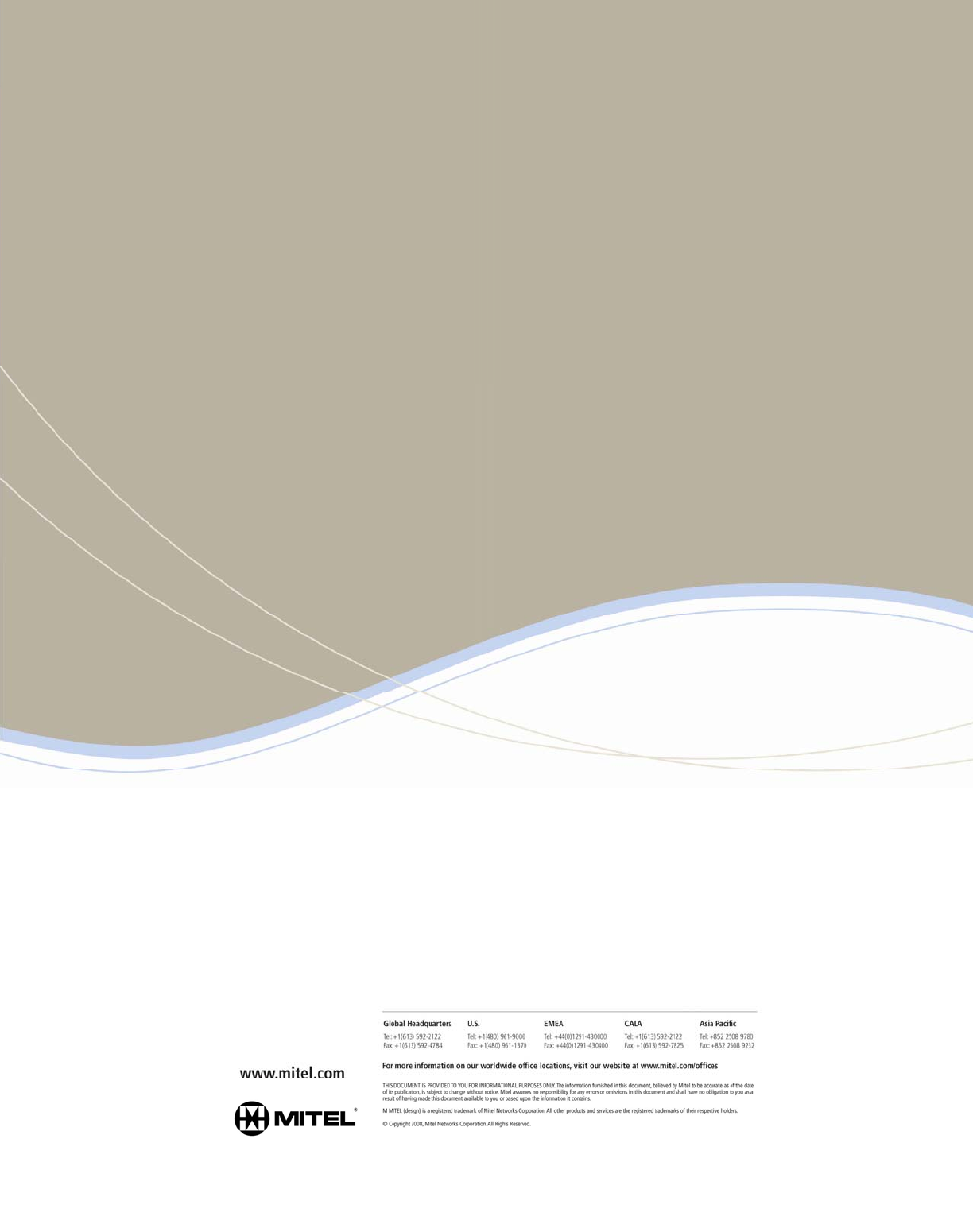 M Mitel (design) é uma marca registada da Mitel Networks Corporation. © 2008, Mitel Networks Corporation. Todos os outros produtos e serviços são marcas comerciais dos respectivos detentores. Todos os direitos reservados.