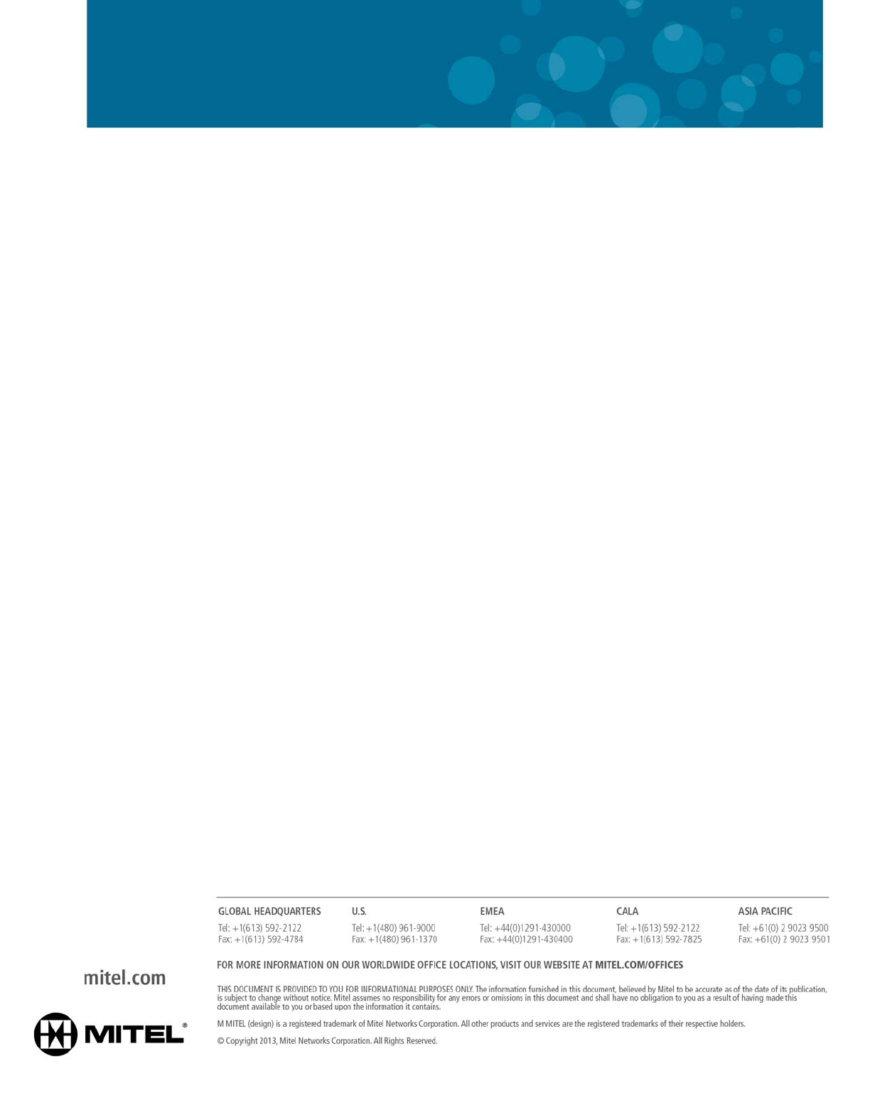 by Mitel Networks™ Corporation (MITEL®). The information is subject to change without notice and should