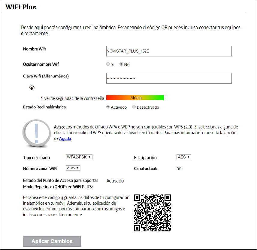 6The Adaptador Wifi + Dual uses AES encryption by default. Use the Encriptación field if you want