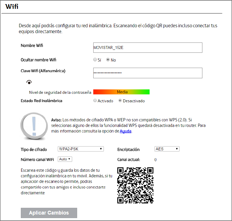 5 The basic wireless security mode is WPA2-PSK (recommended). You can change it in the Tipo de
