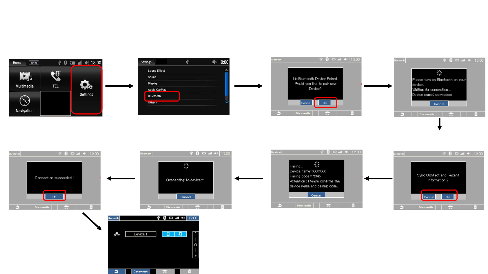 HOME Screen System Setting HOME Screen Pairing Connection Confirmation Screen Pairing Wait Screen