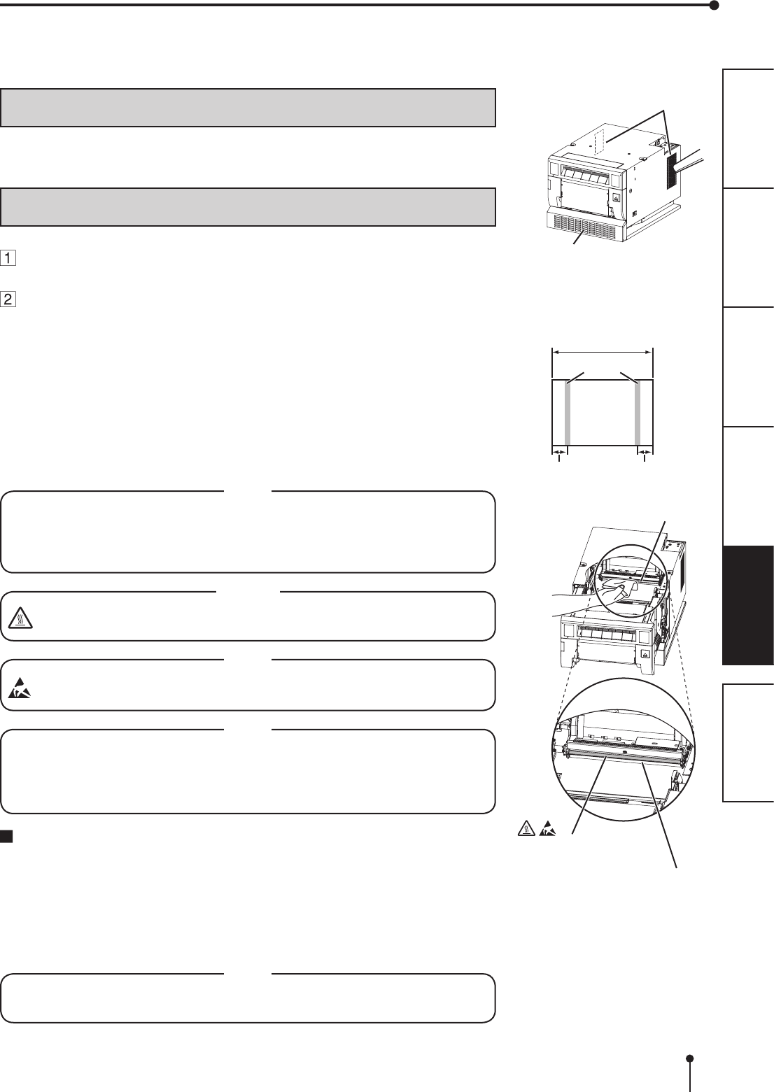 Cleaning as indicated below will help maintain stable printer operation and extend the printer’s life.