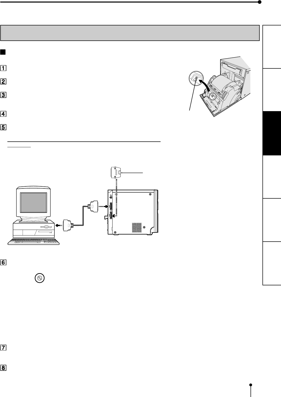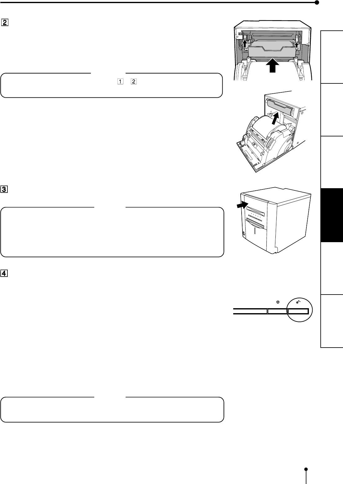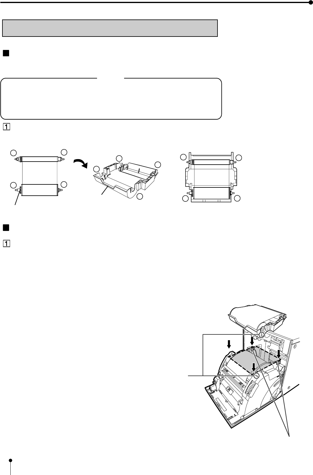 Install the print paper and the ink cassette with the ink ribbon. (Refer