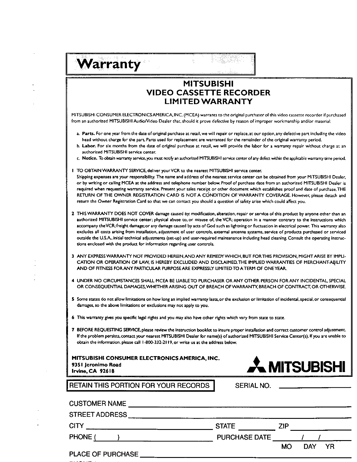 Mitsubishi Electric Corp Video Cassette Recorder 8