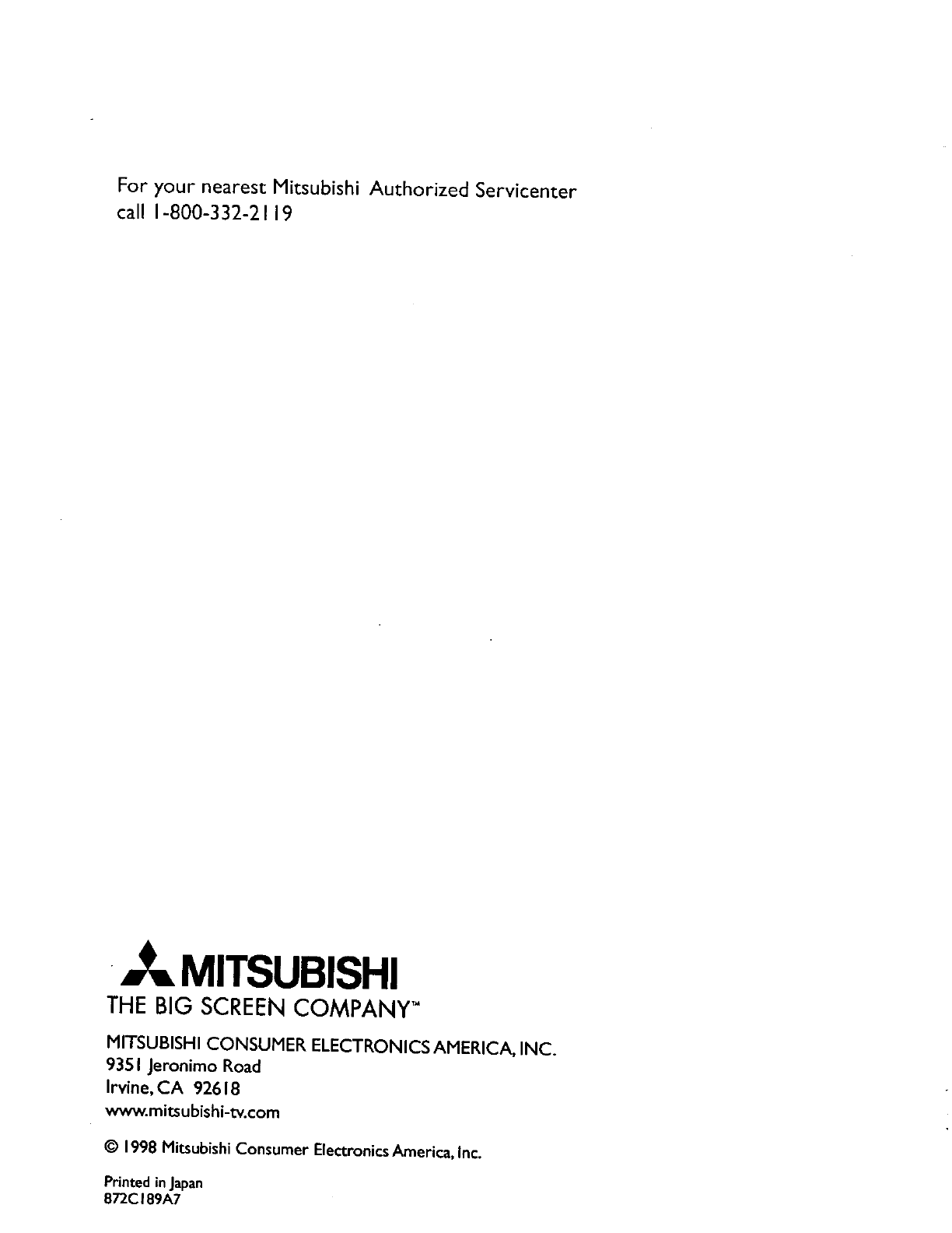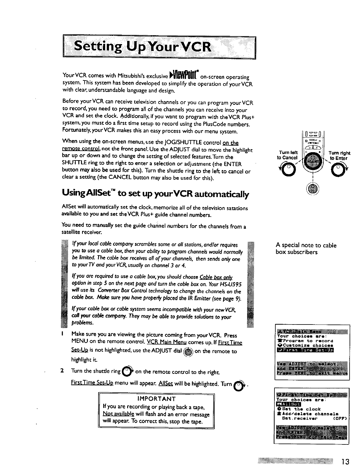 Mitsubishi Electric HS-U595 Video Cassette Recorder User Manual 8
