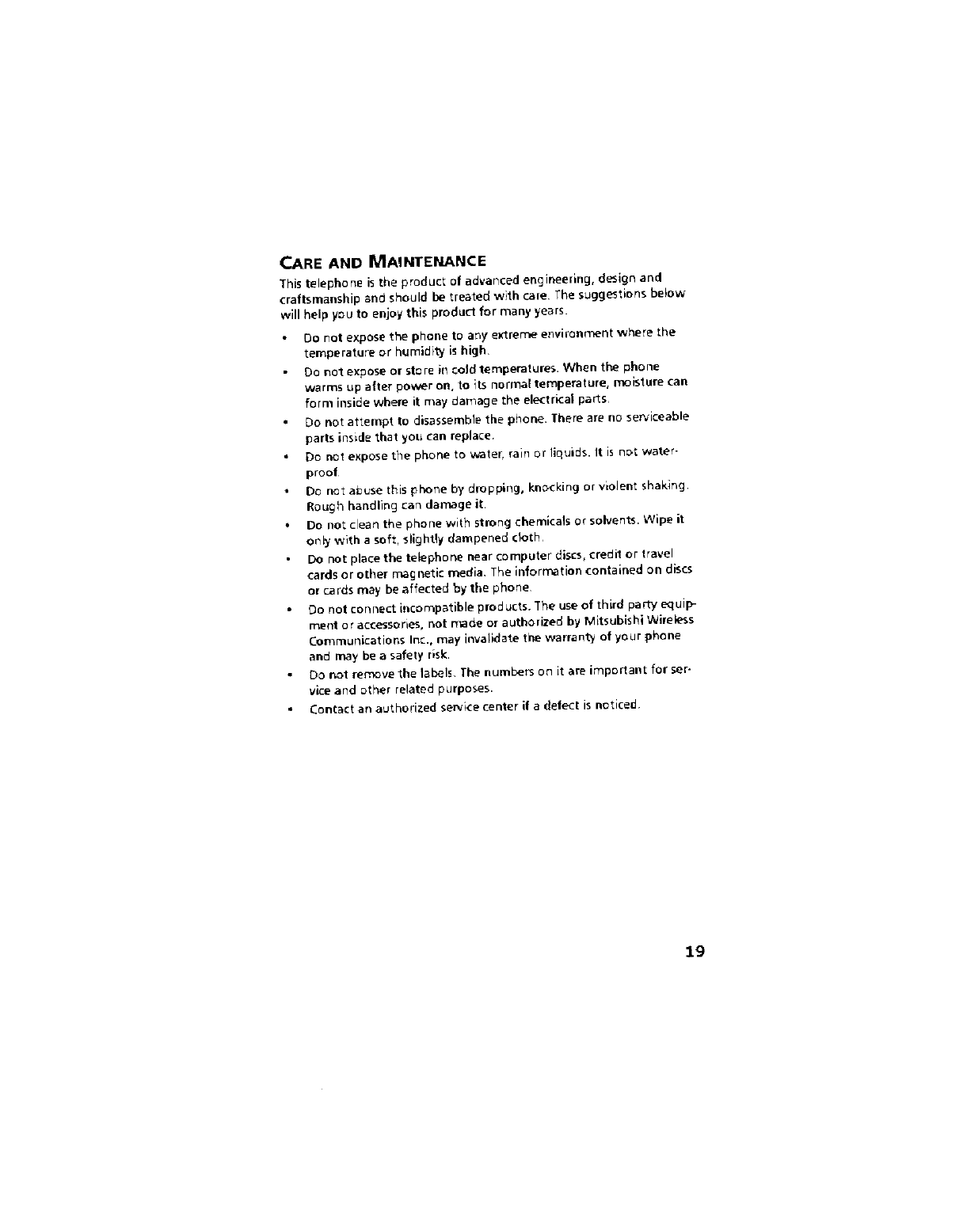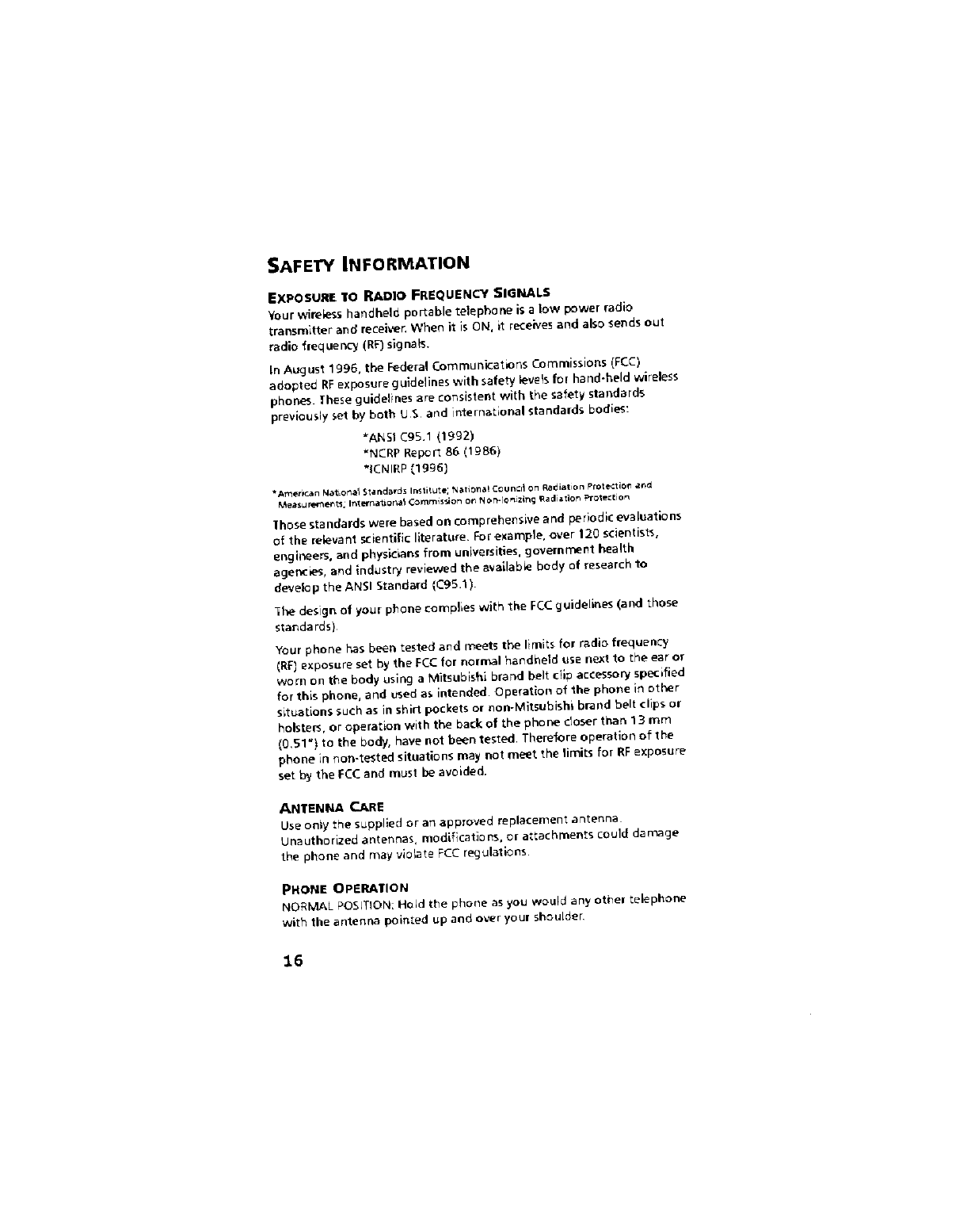 Mitsubishi Electric MT345XFOR6A TDMA/AMPS Cellular Phone User Manual Users