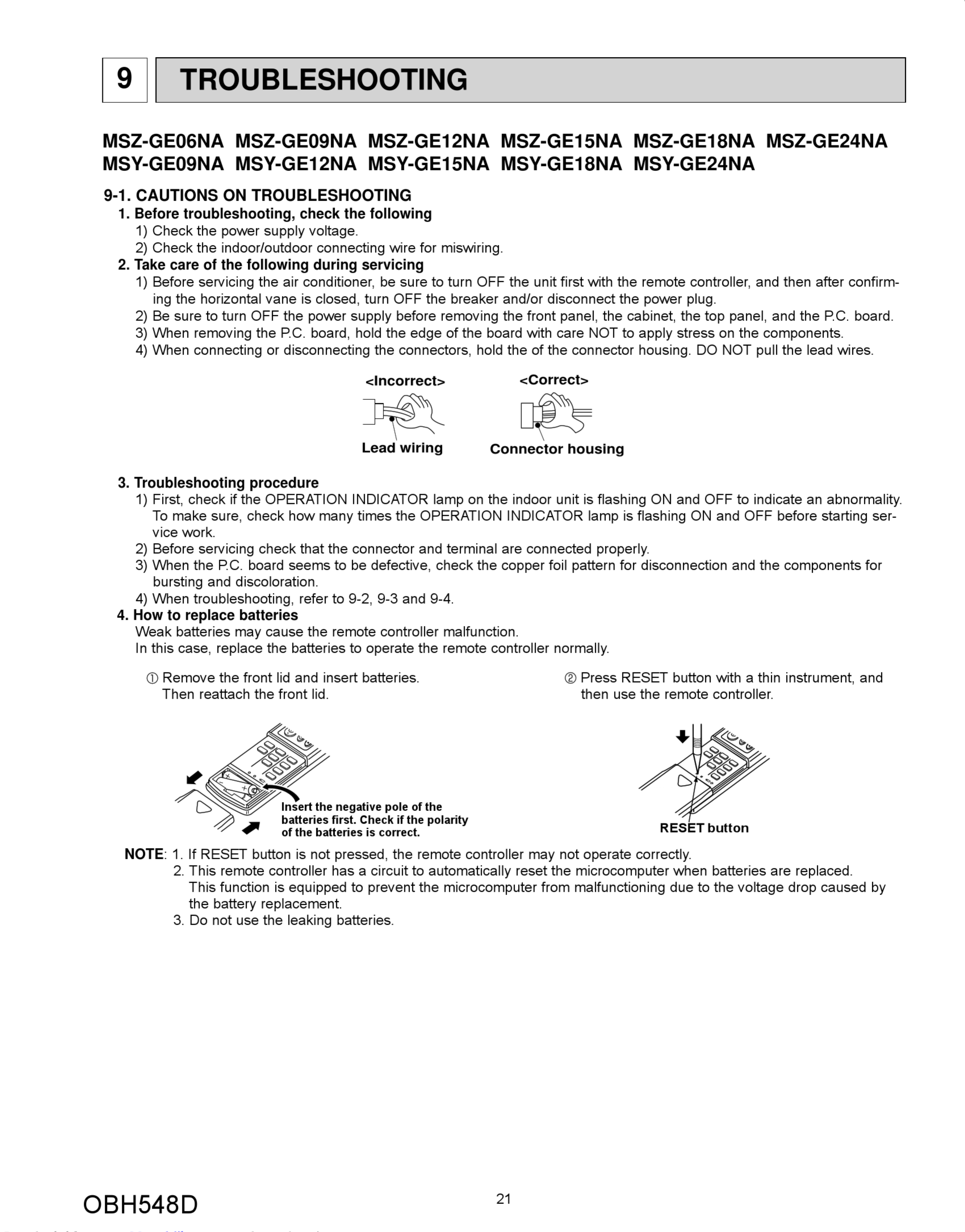 User Manual: Mitsubishi-Electric Mitsubishi-Electric-Msz-Ge09Na-Service-Manual-1003213