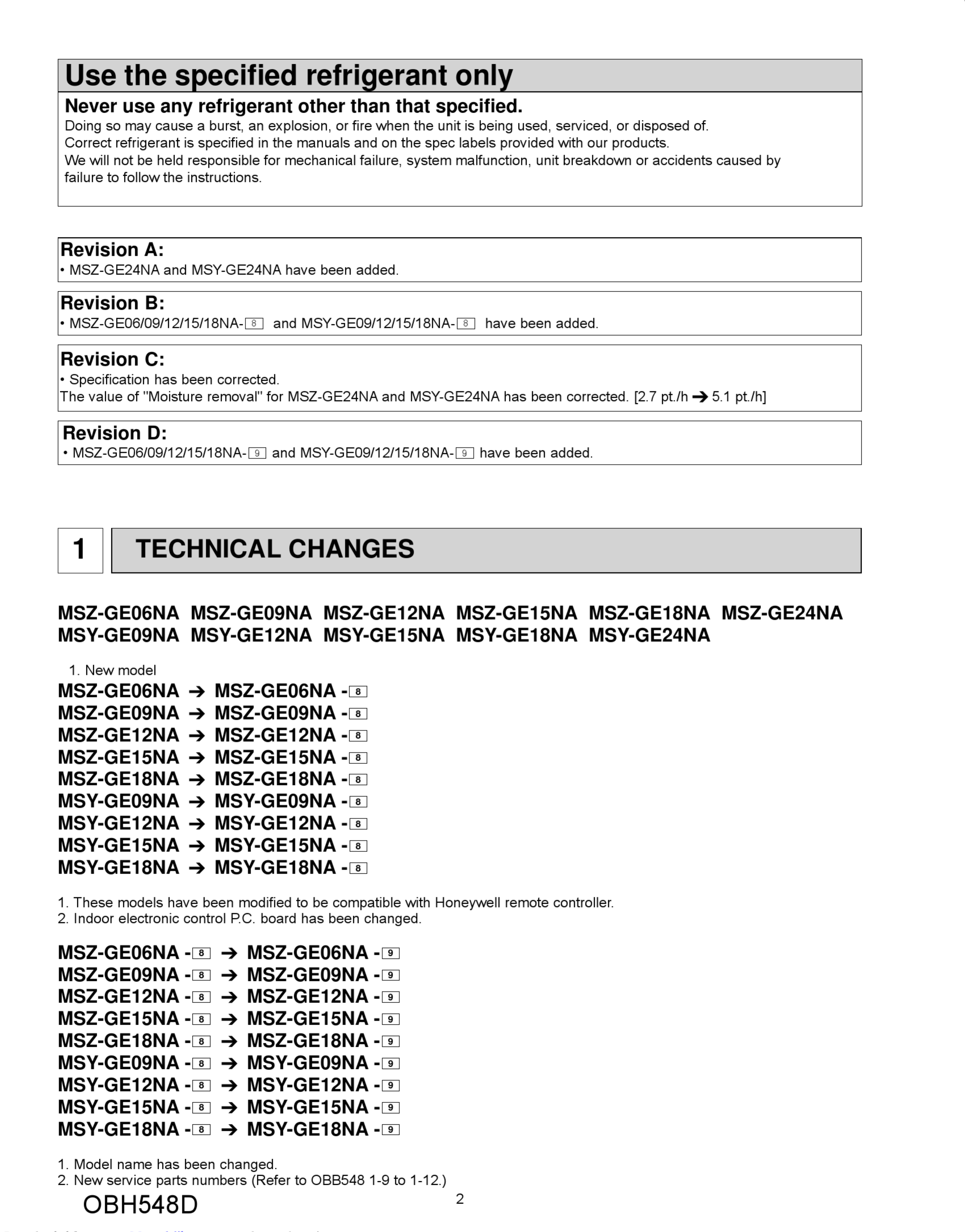 Mitsubishi Electric Msz Ge09Na Service Manual 1003213 User