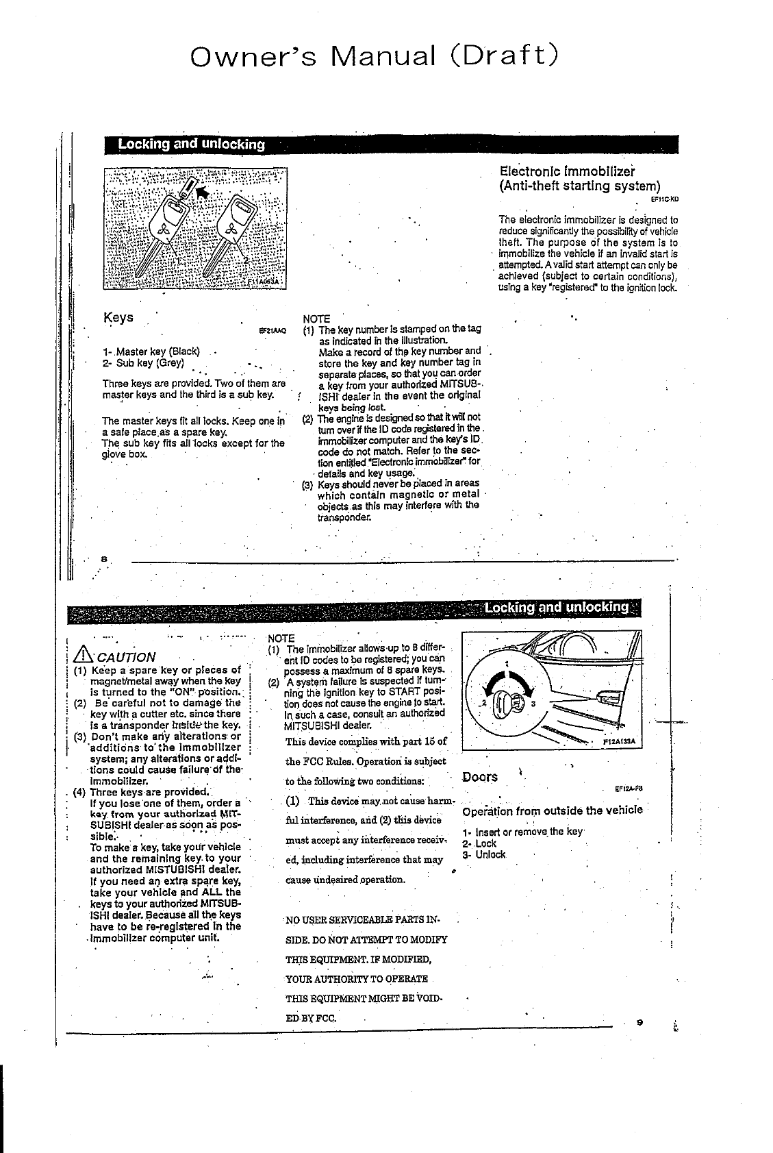 Mitsubishi Electric X1T152IMB21102 Car Immobilizer User Manual