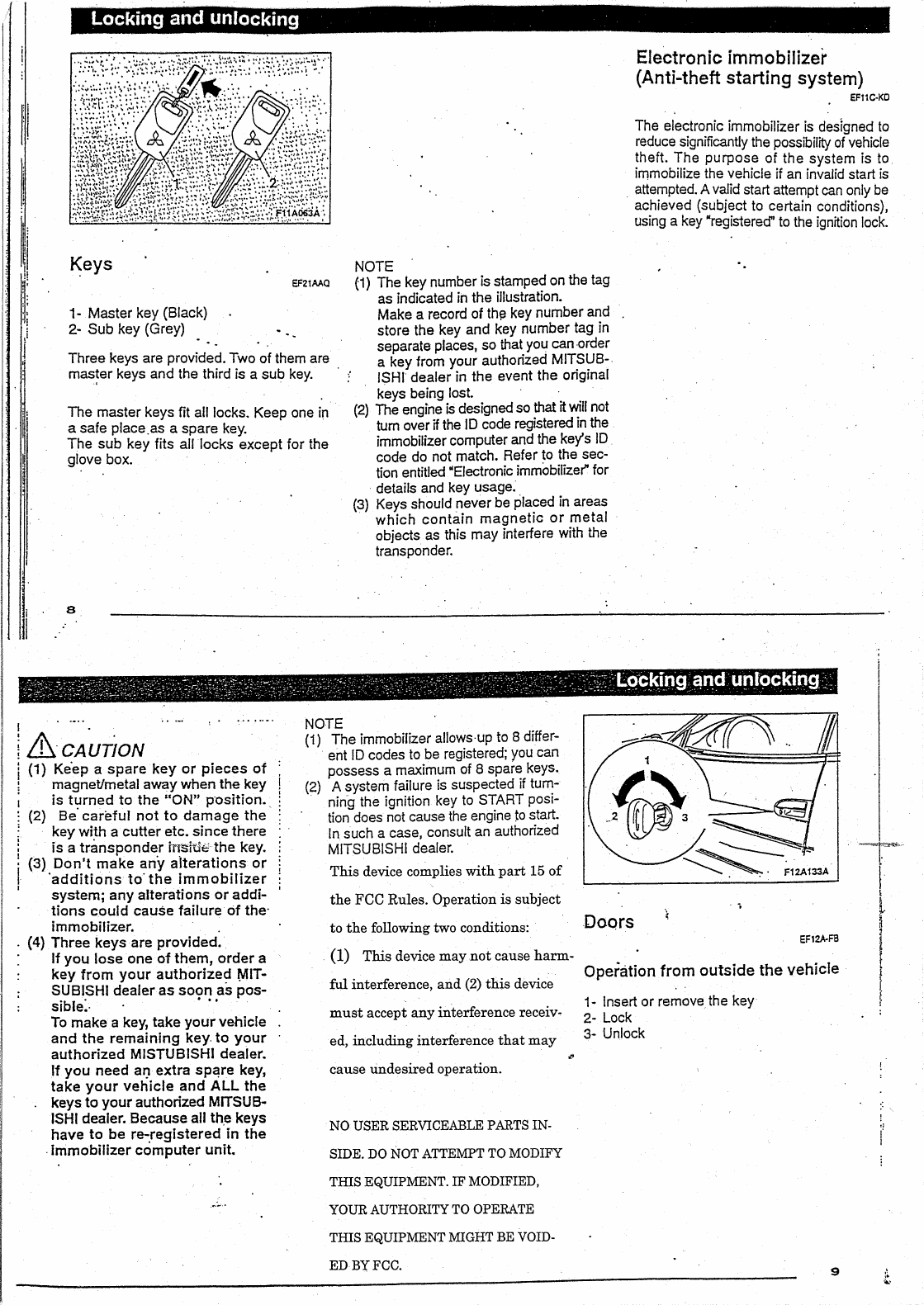Mitsubishi Electric X1T161IMB22301 The Immobilizer System User Manual