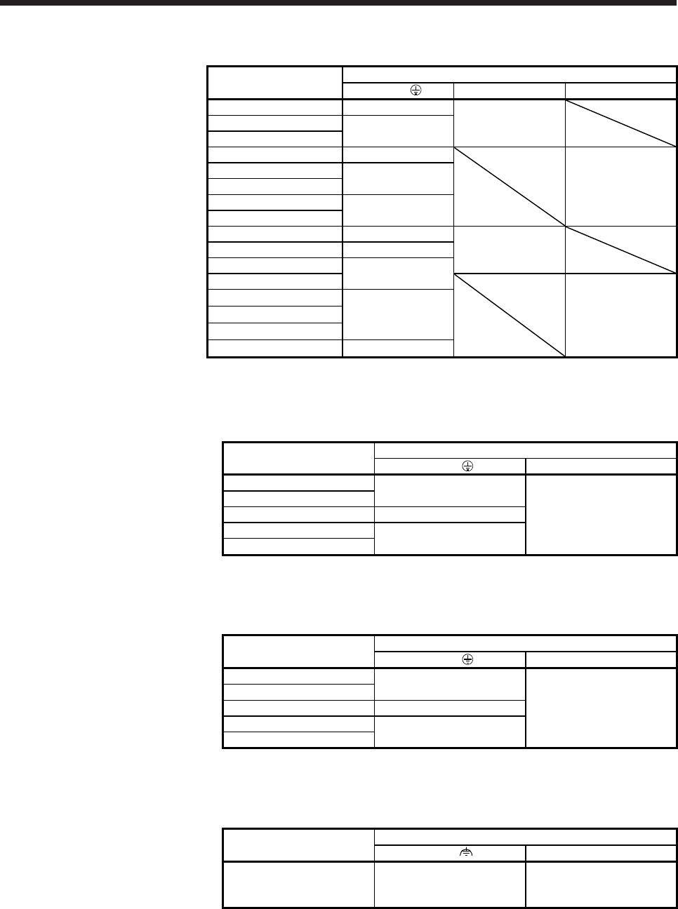 Indicates what must be done. For example, grounding is indicated by .
