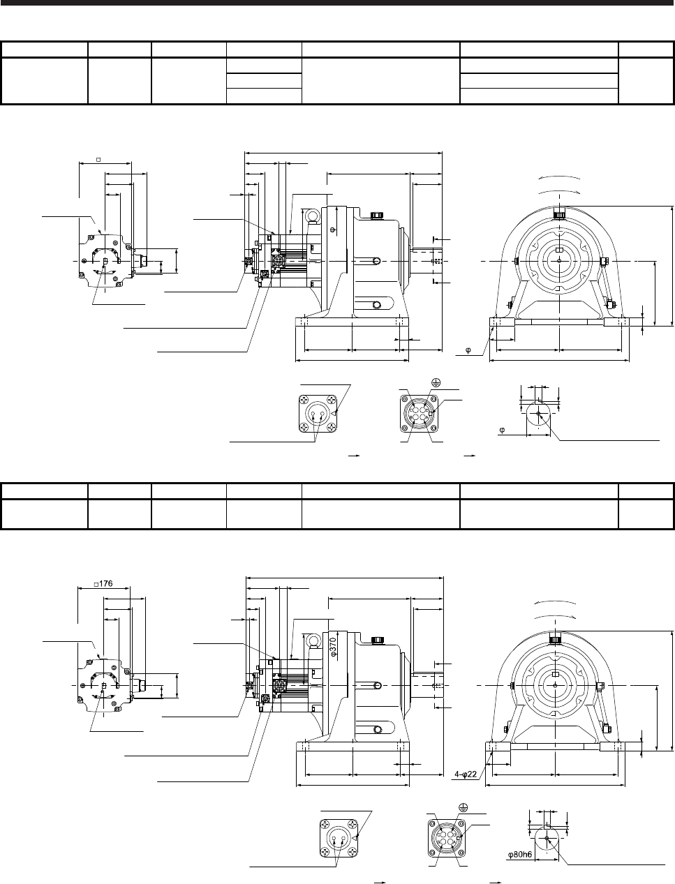 - 6.8.7 With shaft-output type reducer for high precision applications, flange mounting (without an electromagnetic brake)