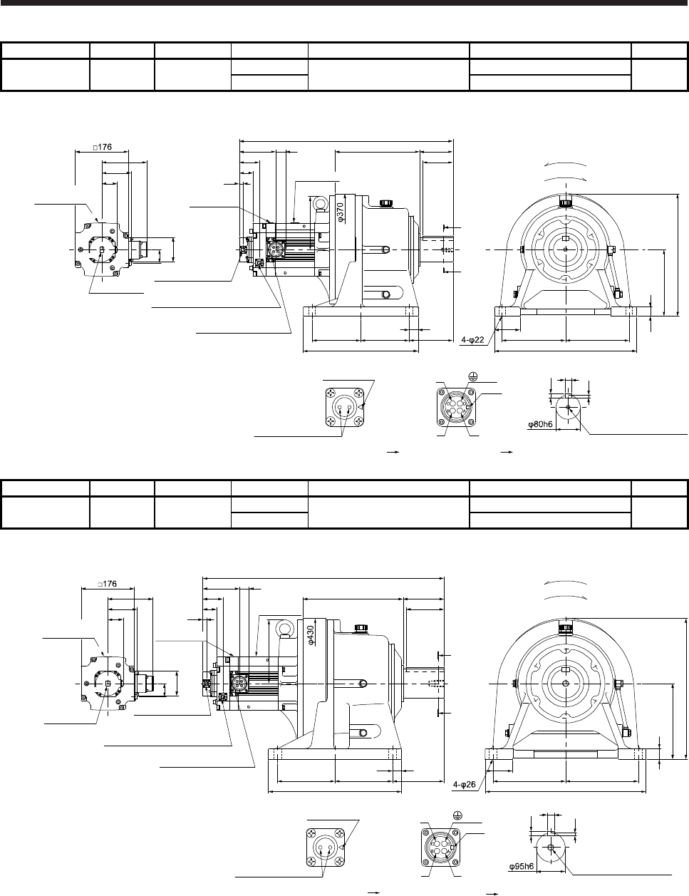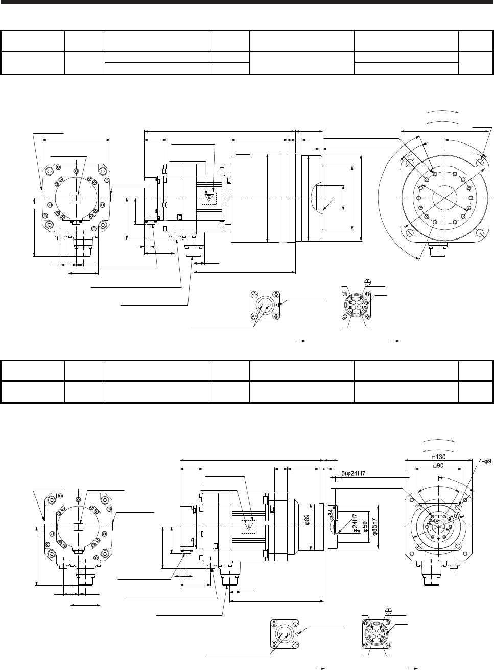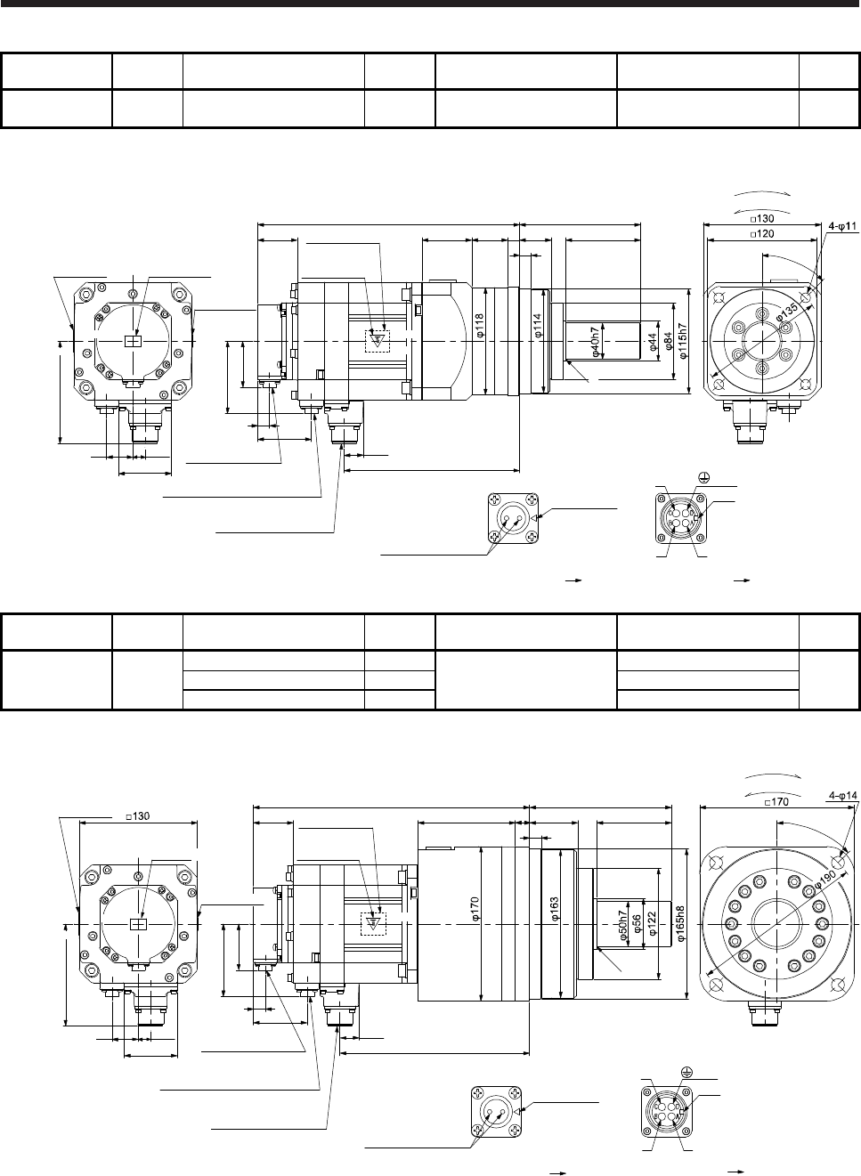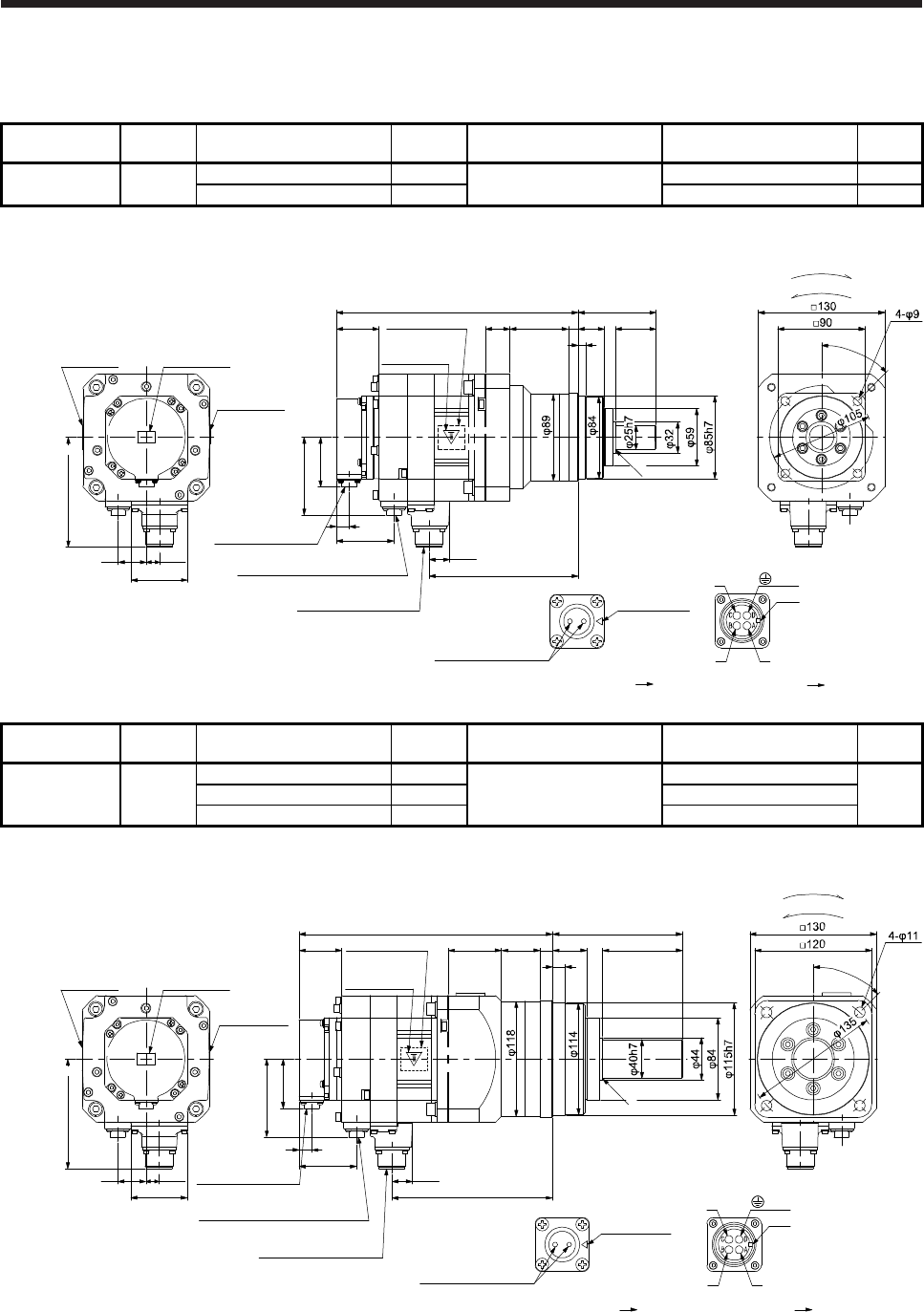 - 6.8.5 With flange-output type reducer for high precision applications, flange mounting (without an electromagnetic brake)