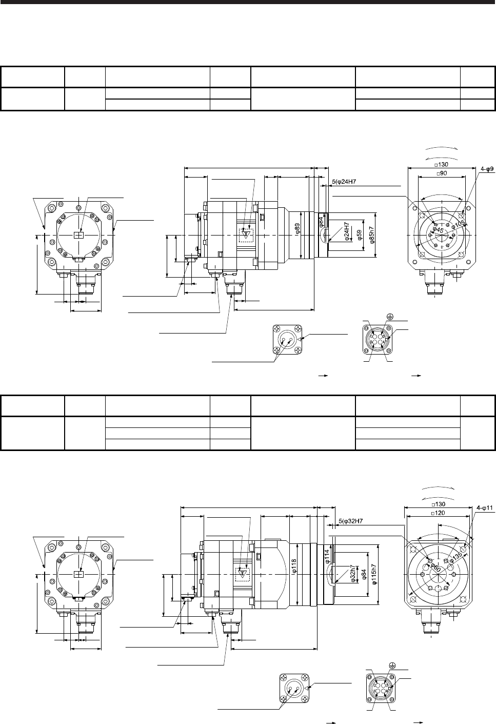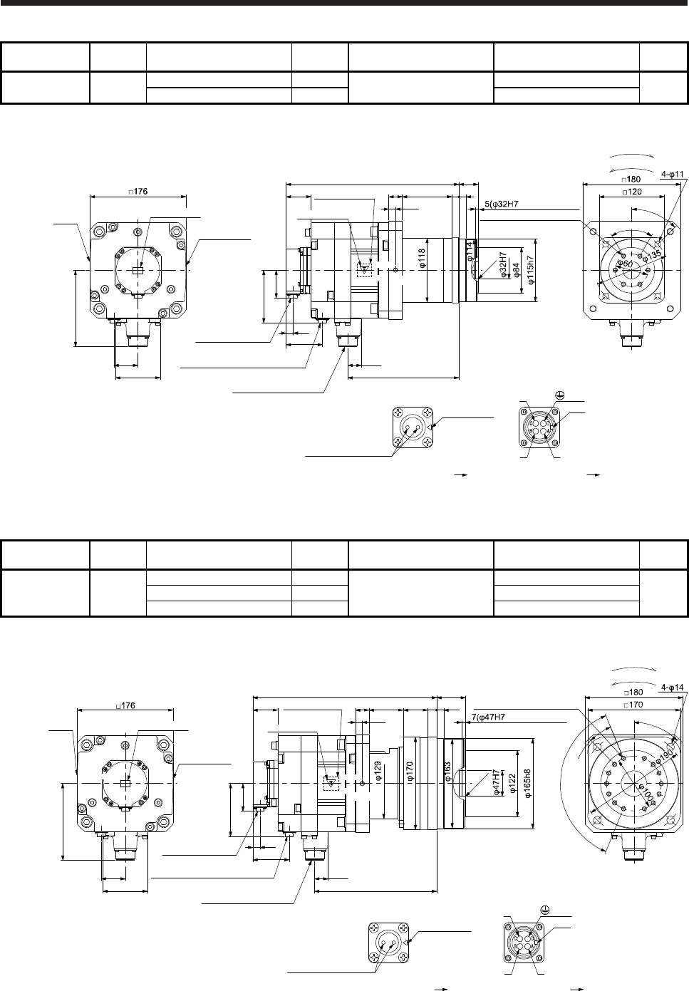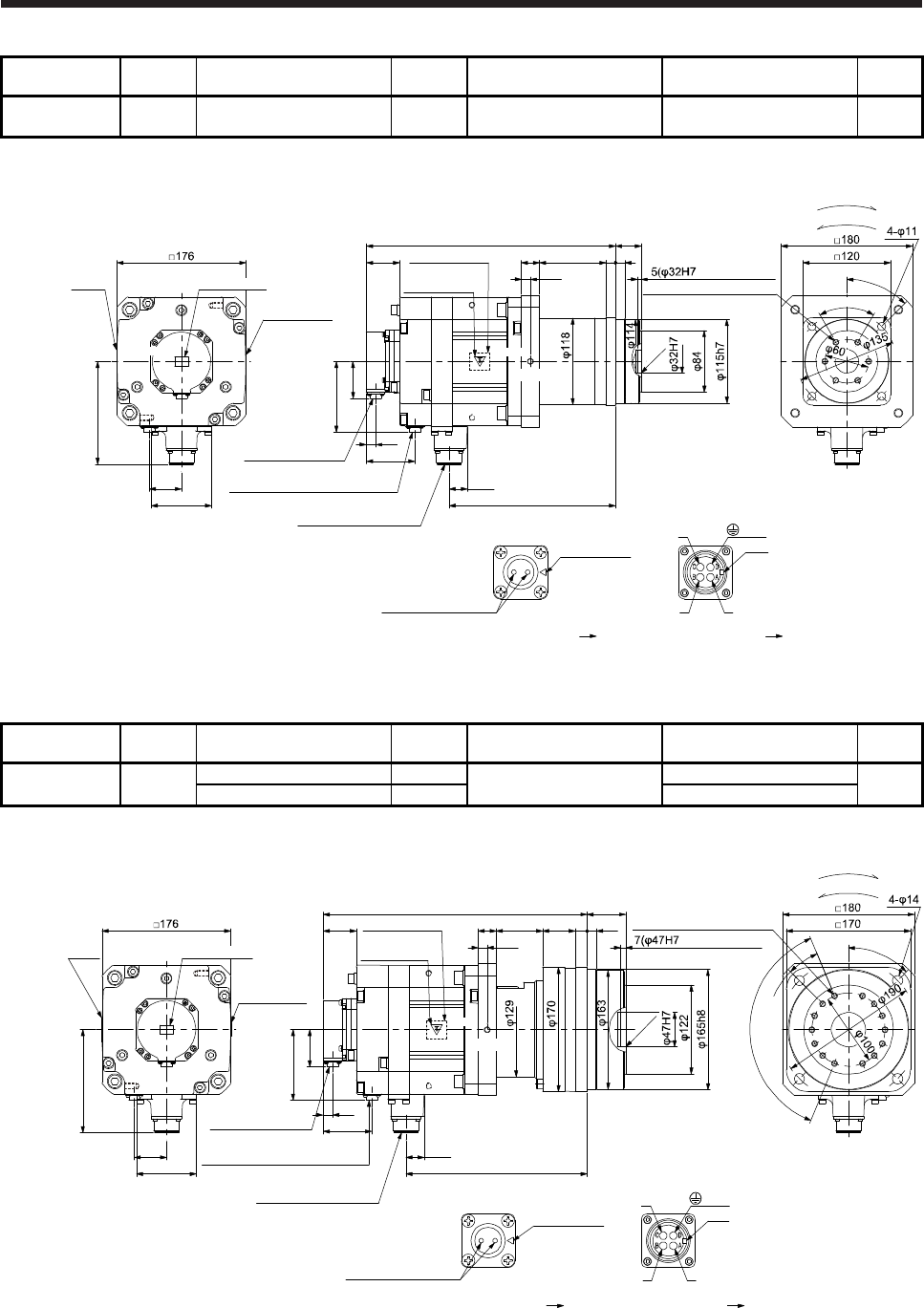 - 7.7.7 With flange-output type reducer for high precision applications, flange mounting (without an electromagnetic brake)