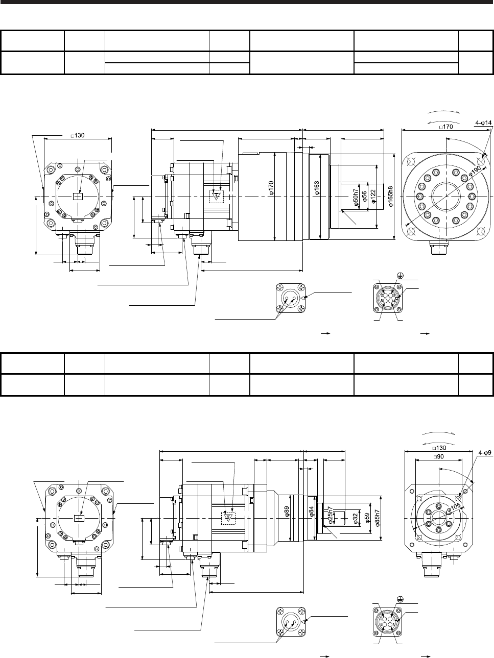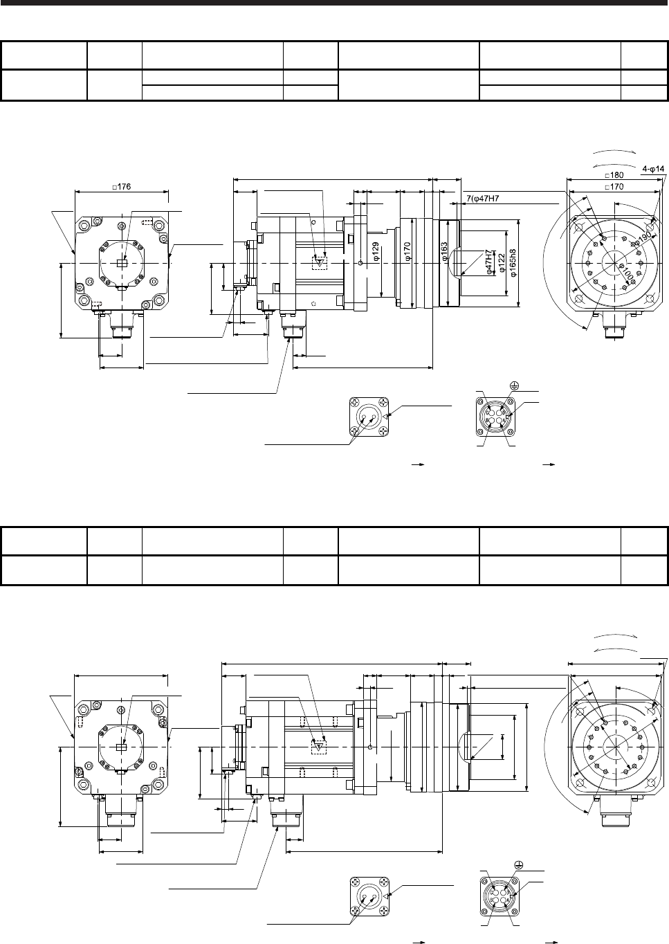 - 7.7.9 With shaft-output type reducer for high precision applications, flange mounting (without an electromagnetic brake)