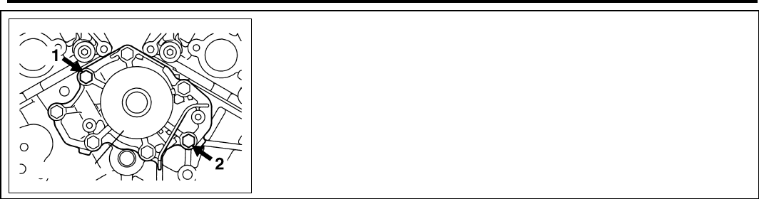 (1) Install the water pump and tighten the bolts 1 and 2 in that