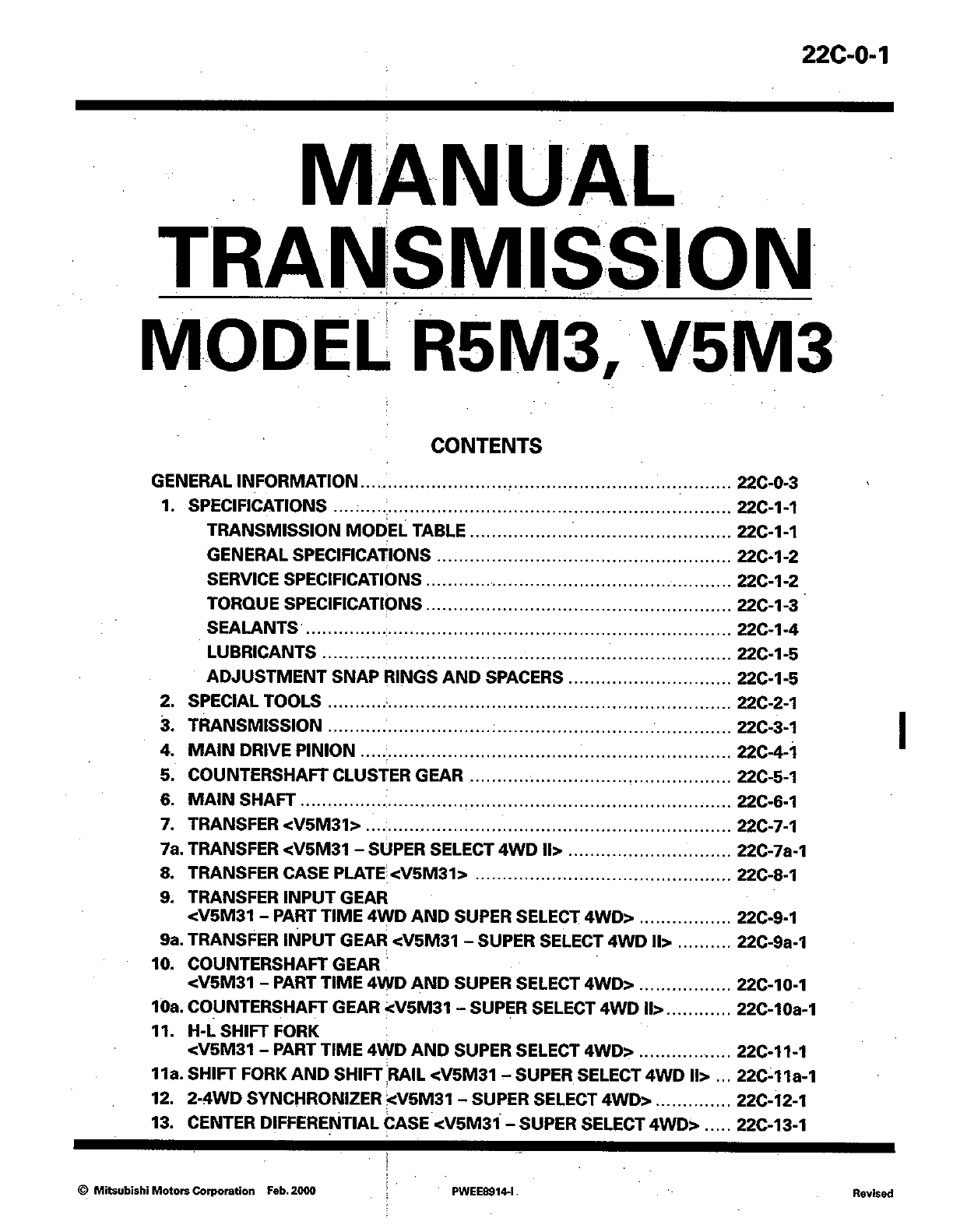 - MANUAL TRANSMISSION <R5M3, V5M3> [22C]