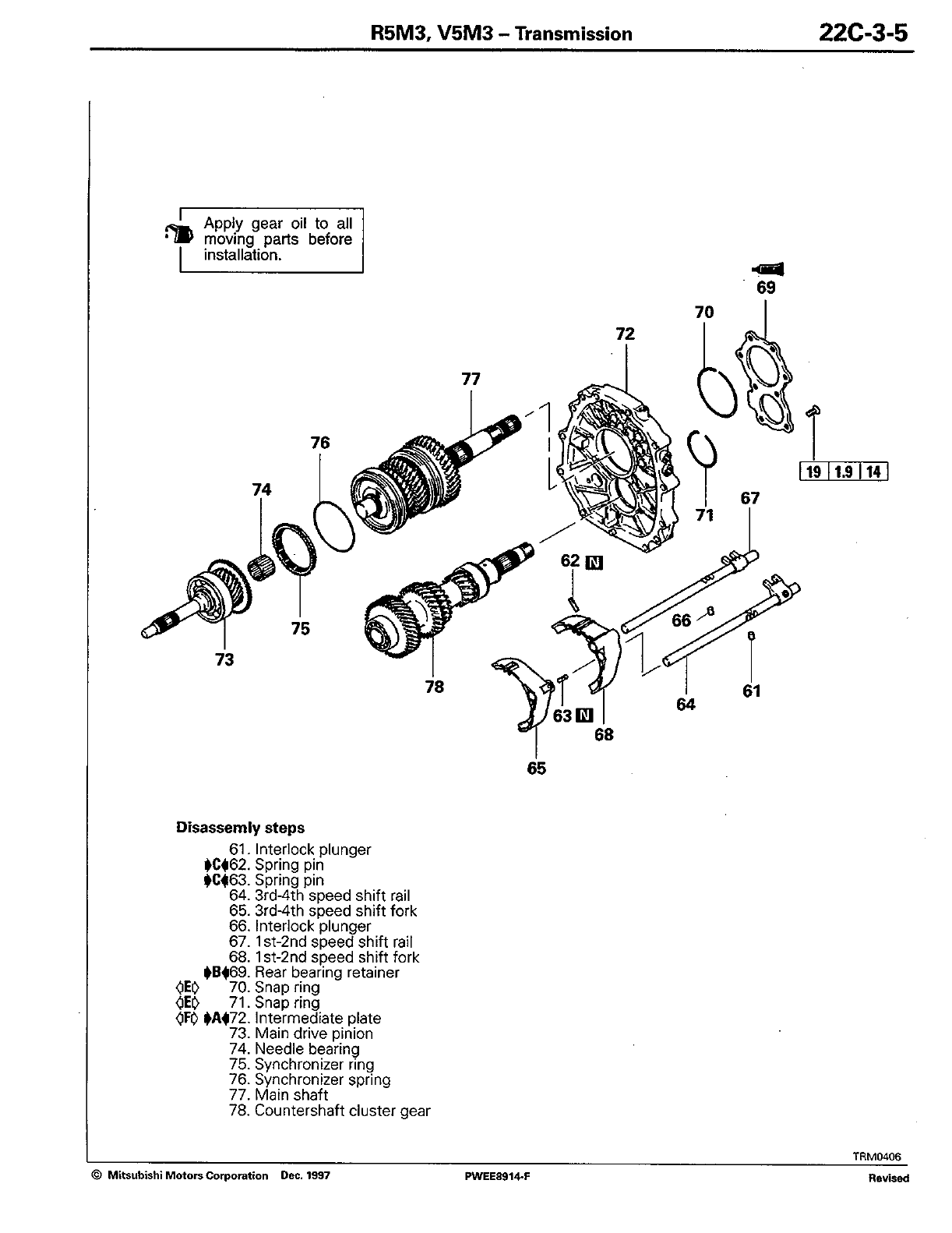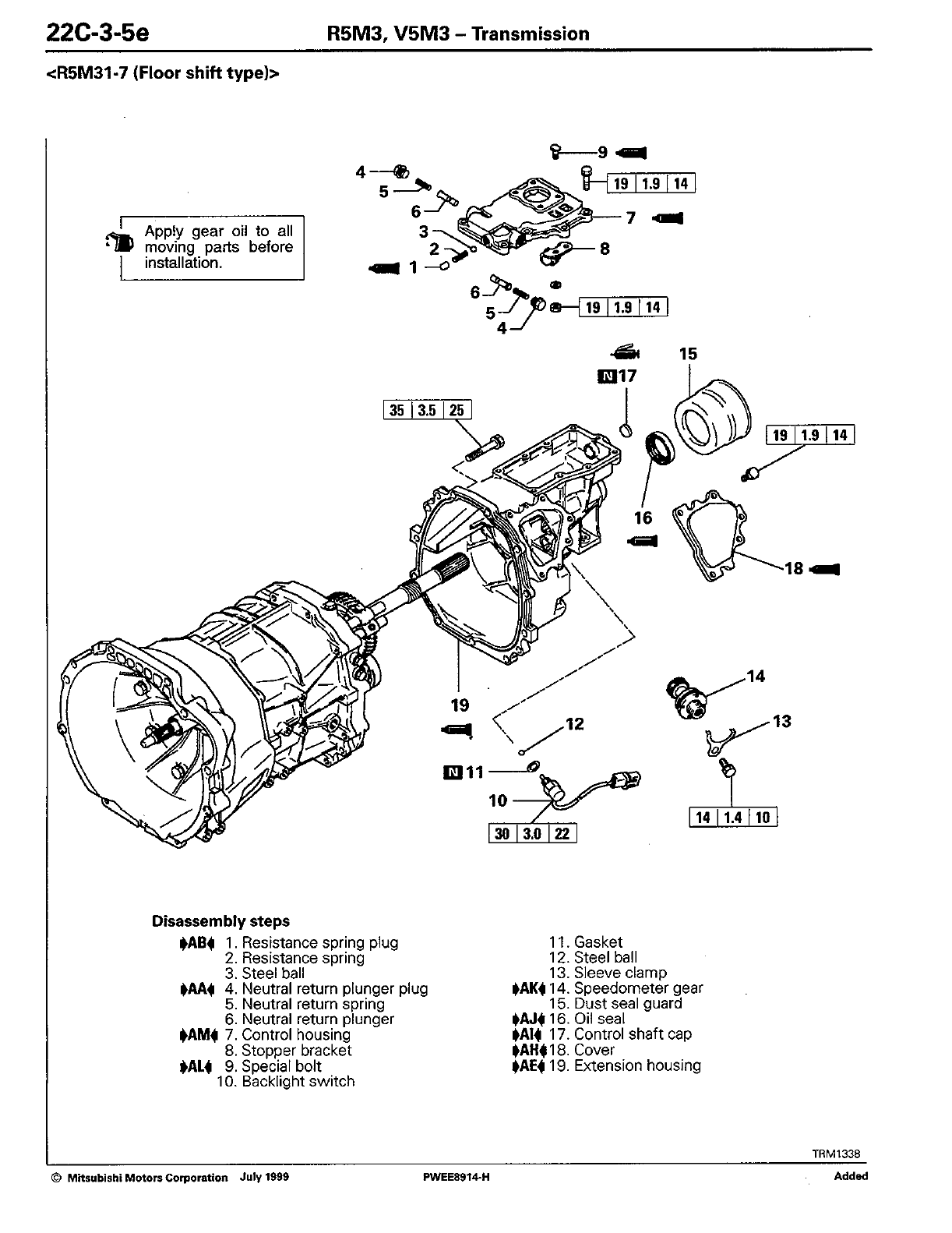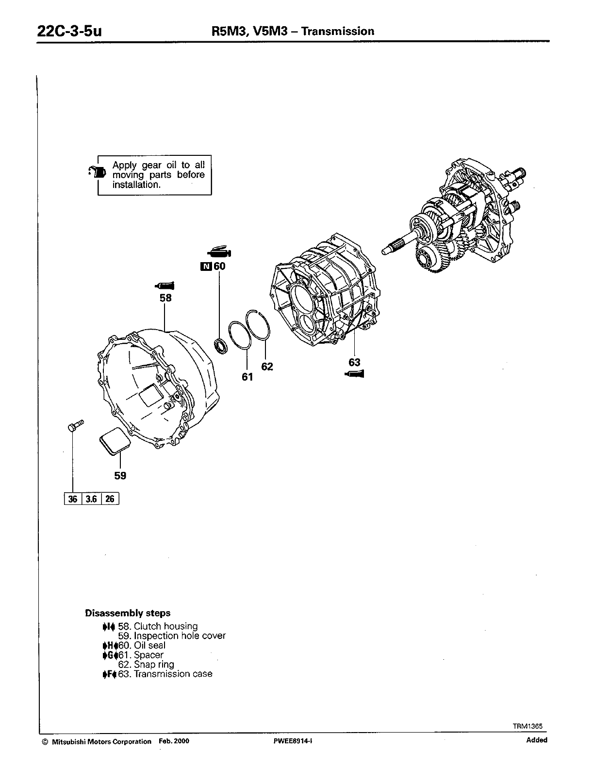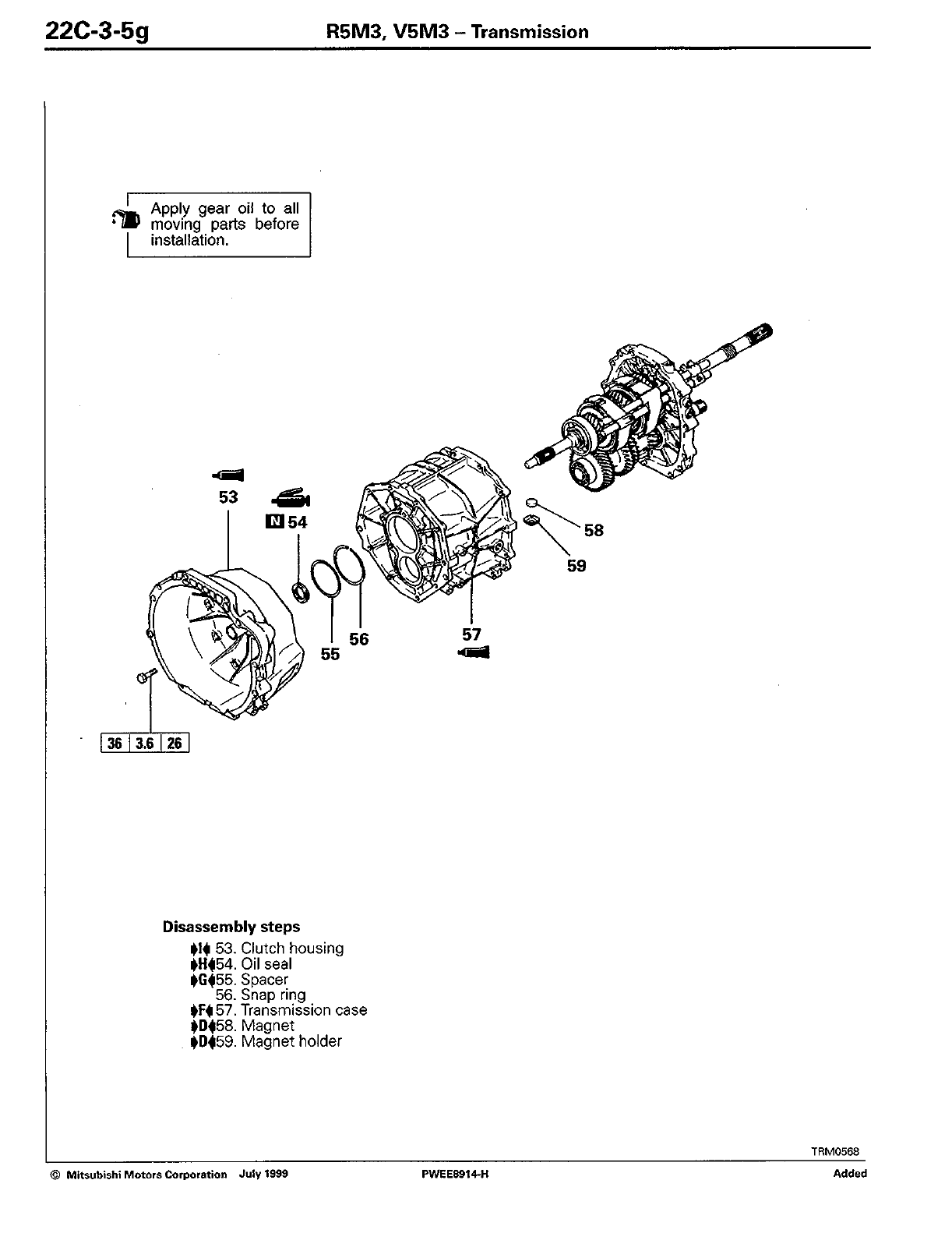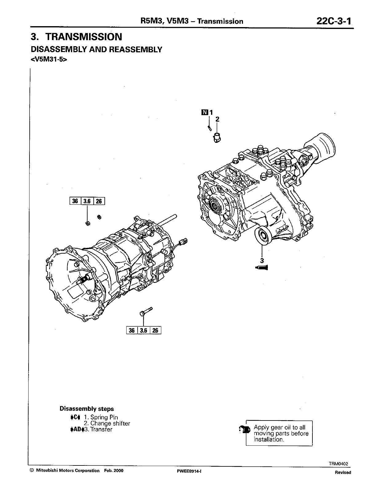 Mitsubishi Motors Automobile R5M3 Users Manual TRANSMISSION Workshop FR M/T (W E)