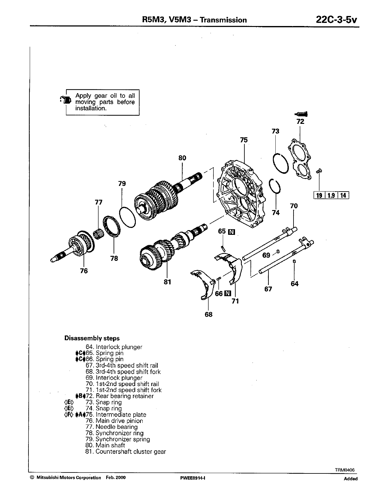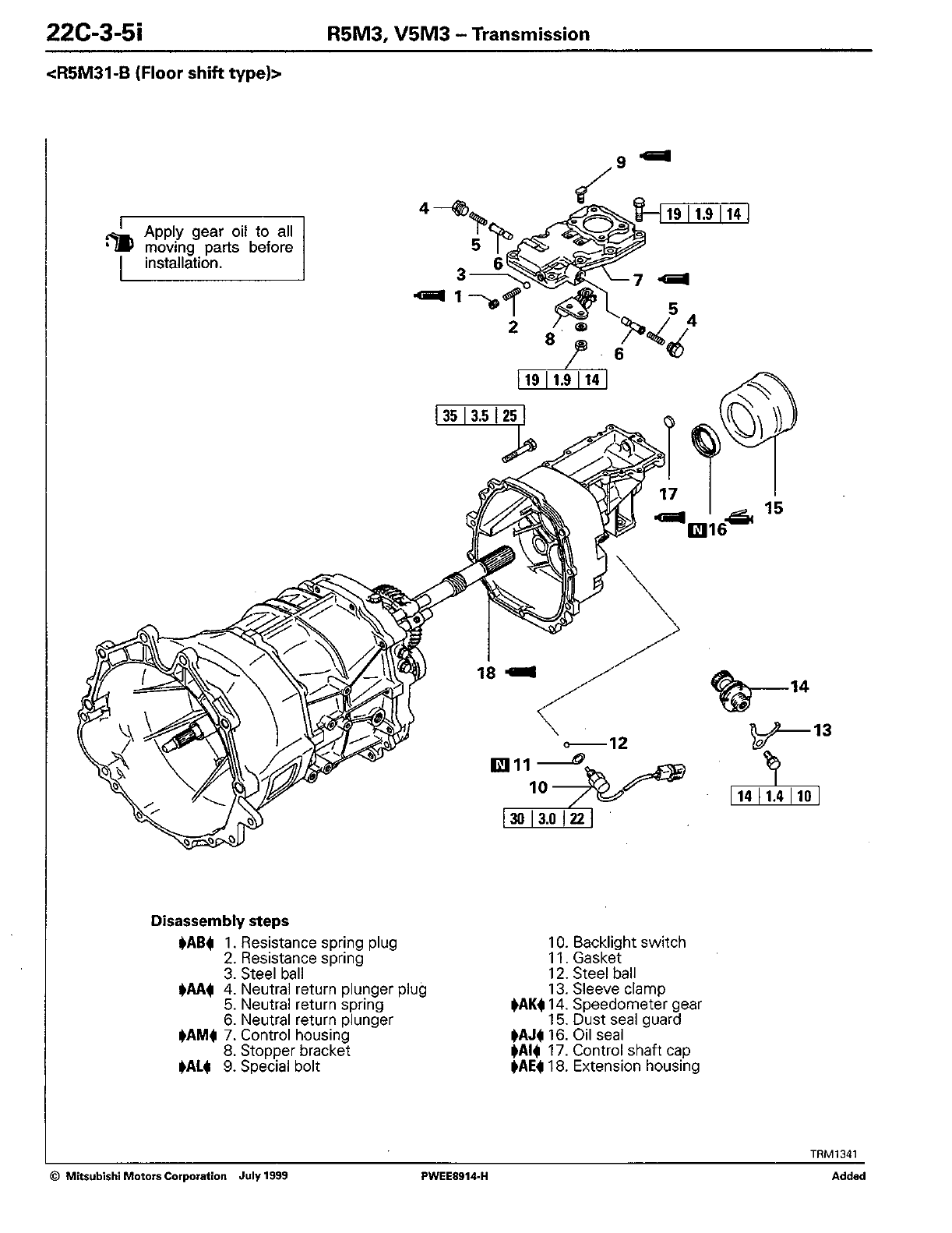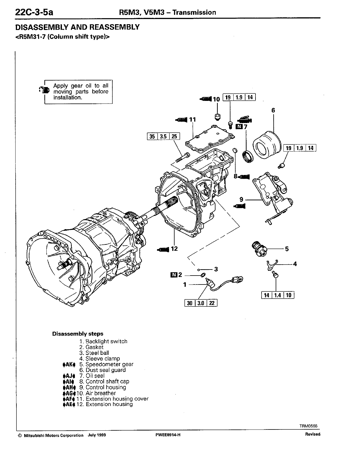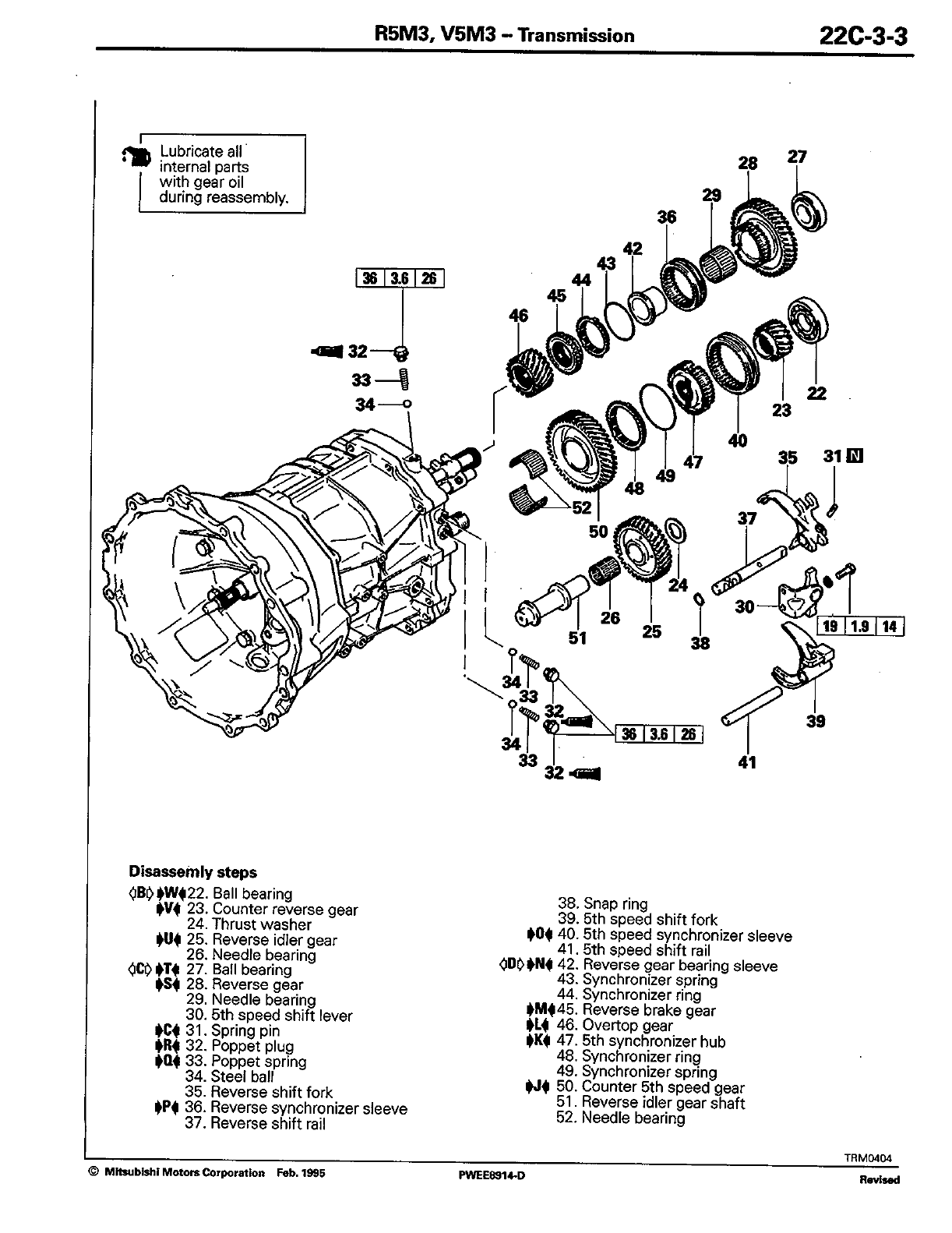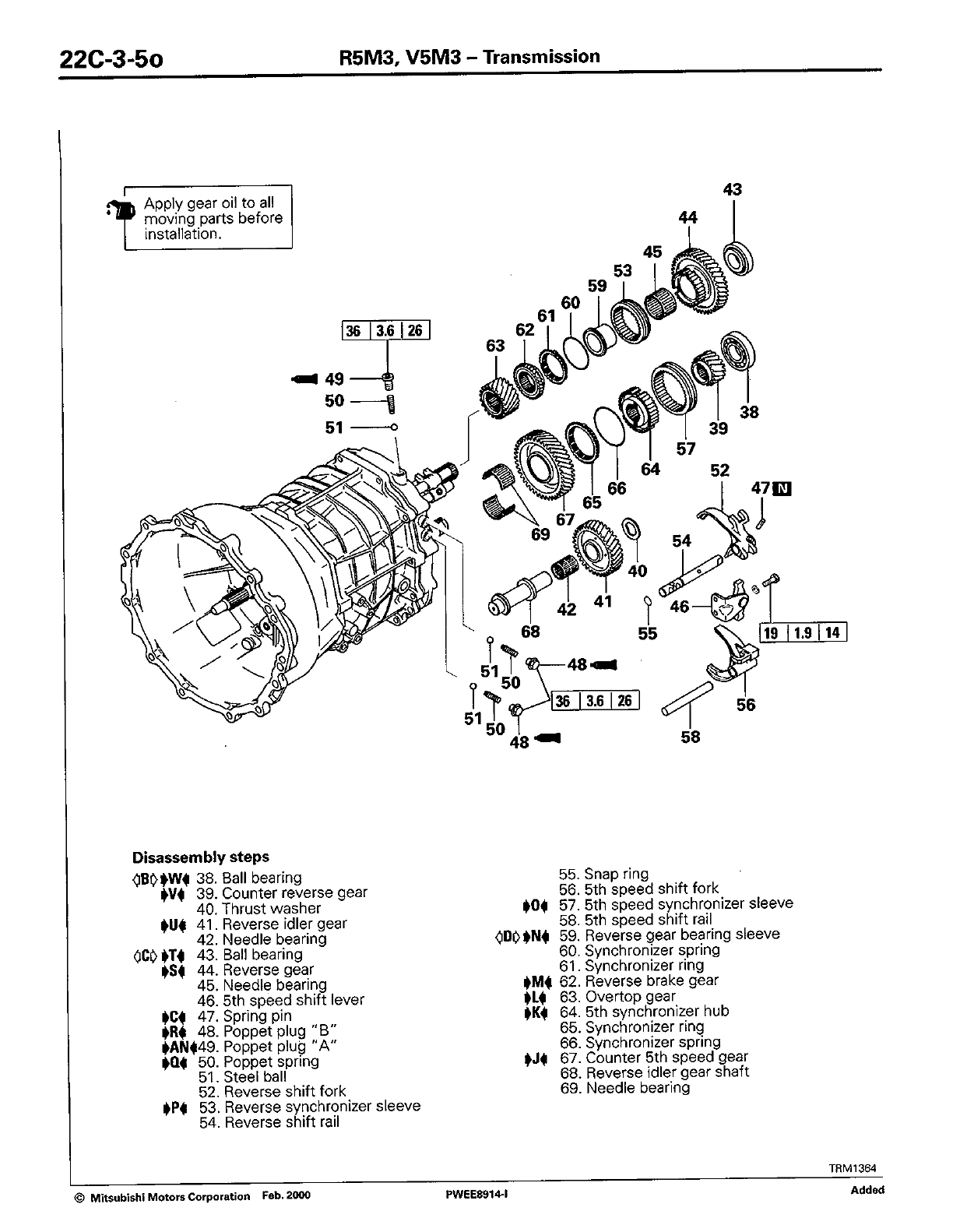 Mitsubishi Motors Automobile R5M3 Users Manual TRANSMISSION Workshop FR M/T (W E)