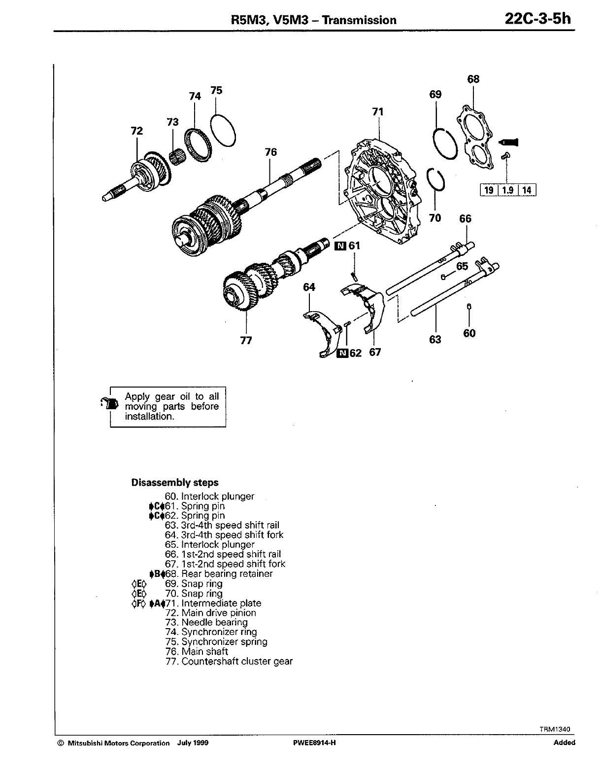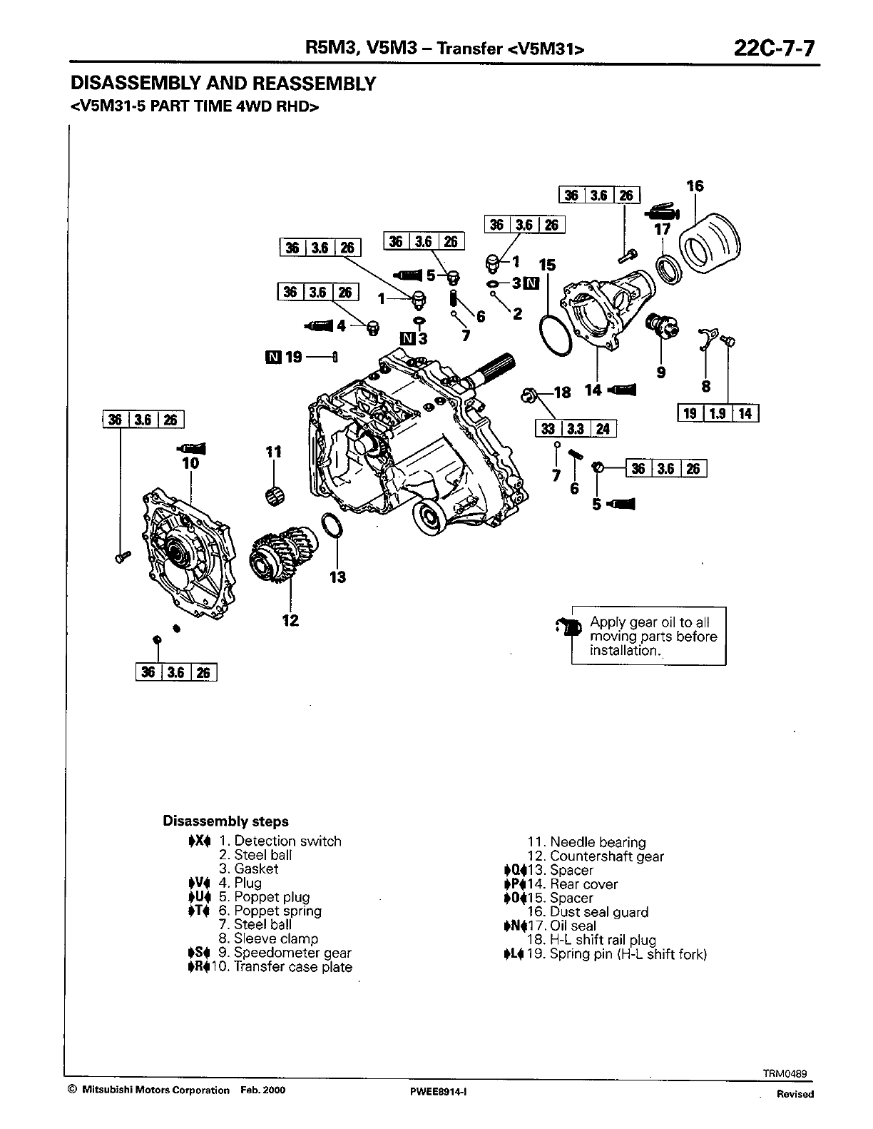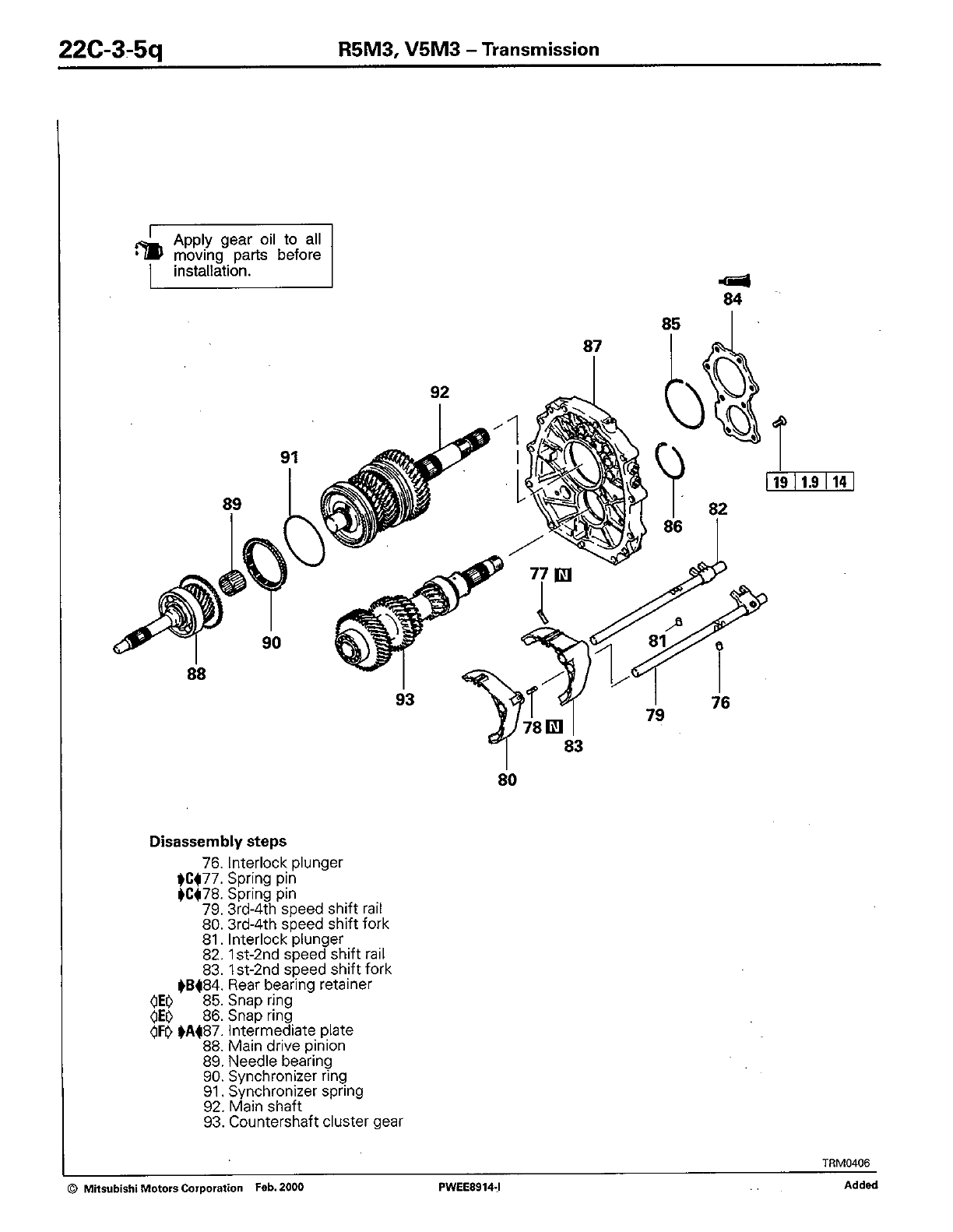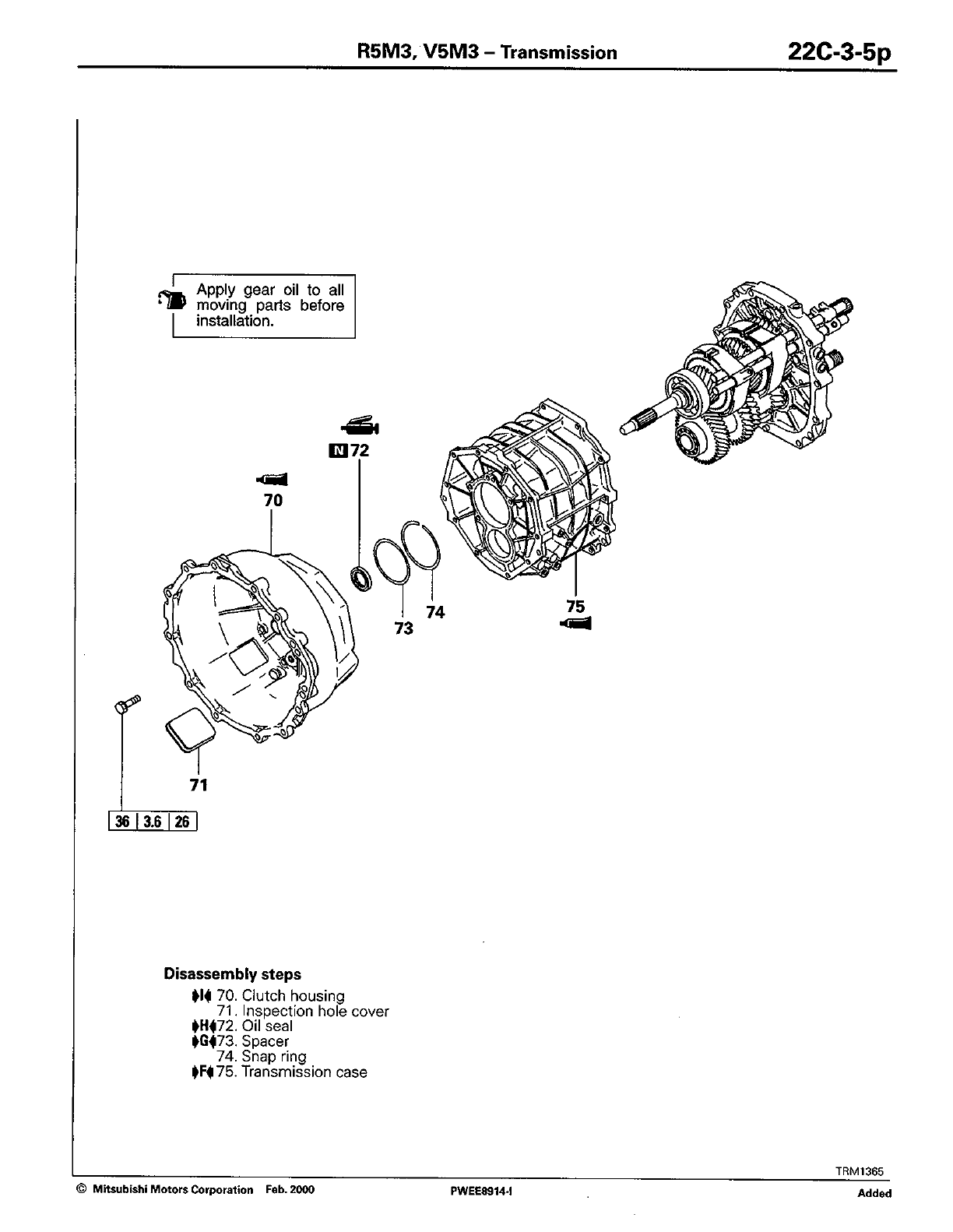 Mitsubishi Motors Automobile R5M3 Users Manual TRANSMISSION Workshop FR M/T (W E)