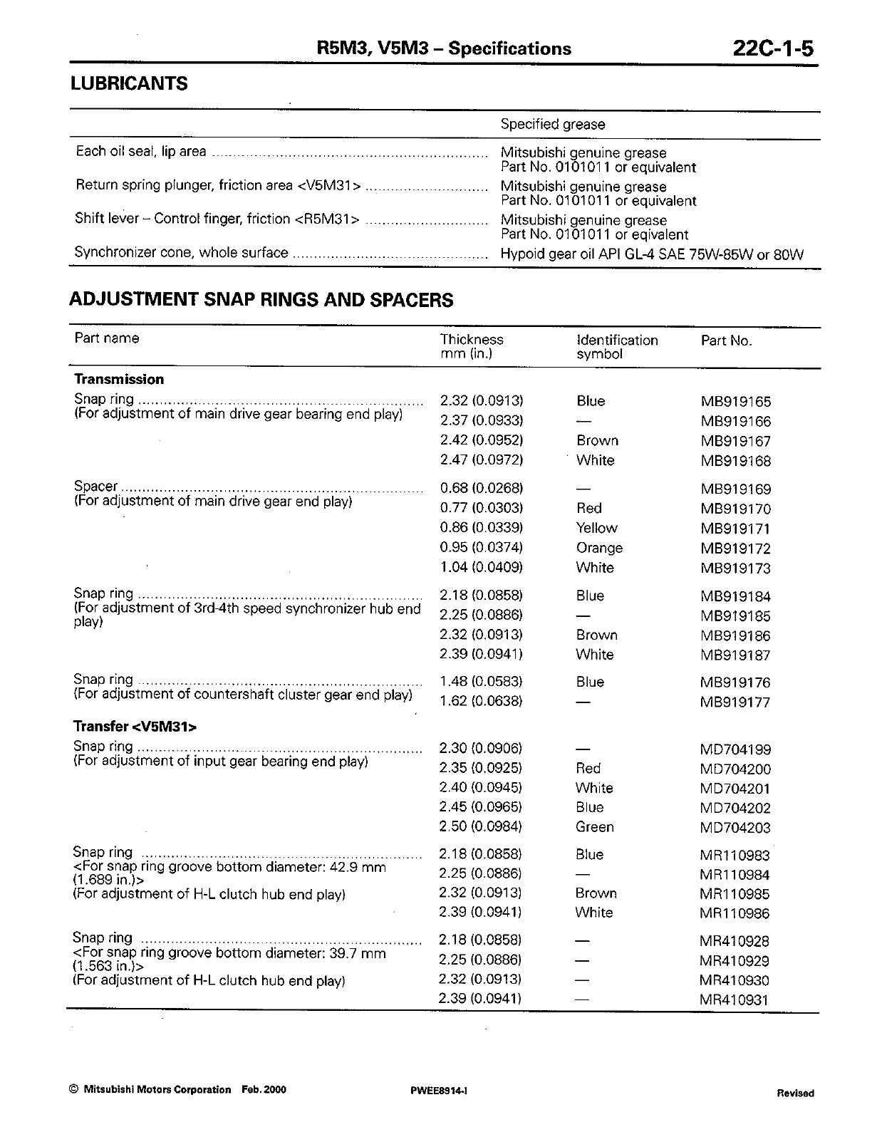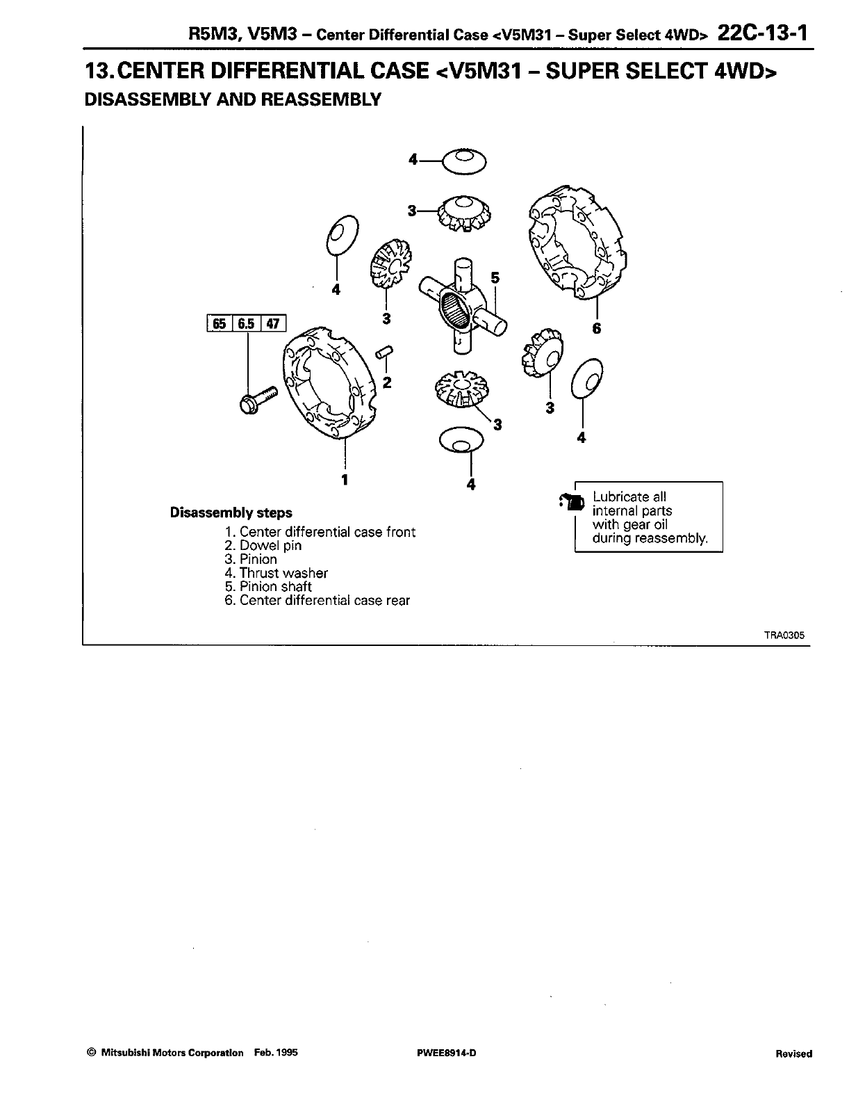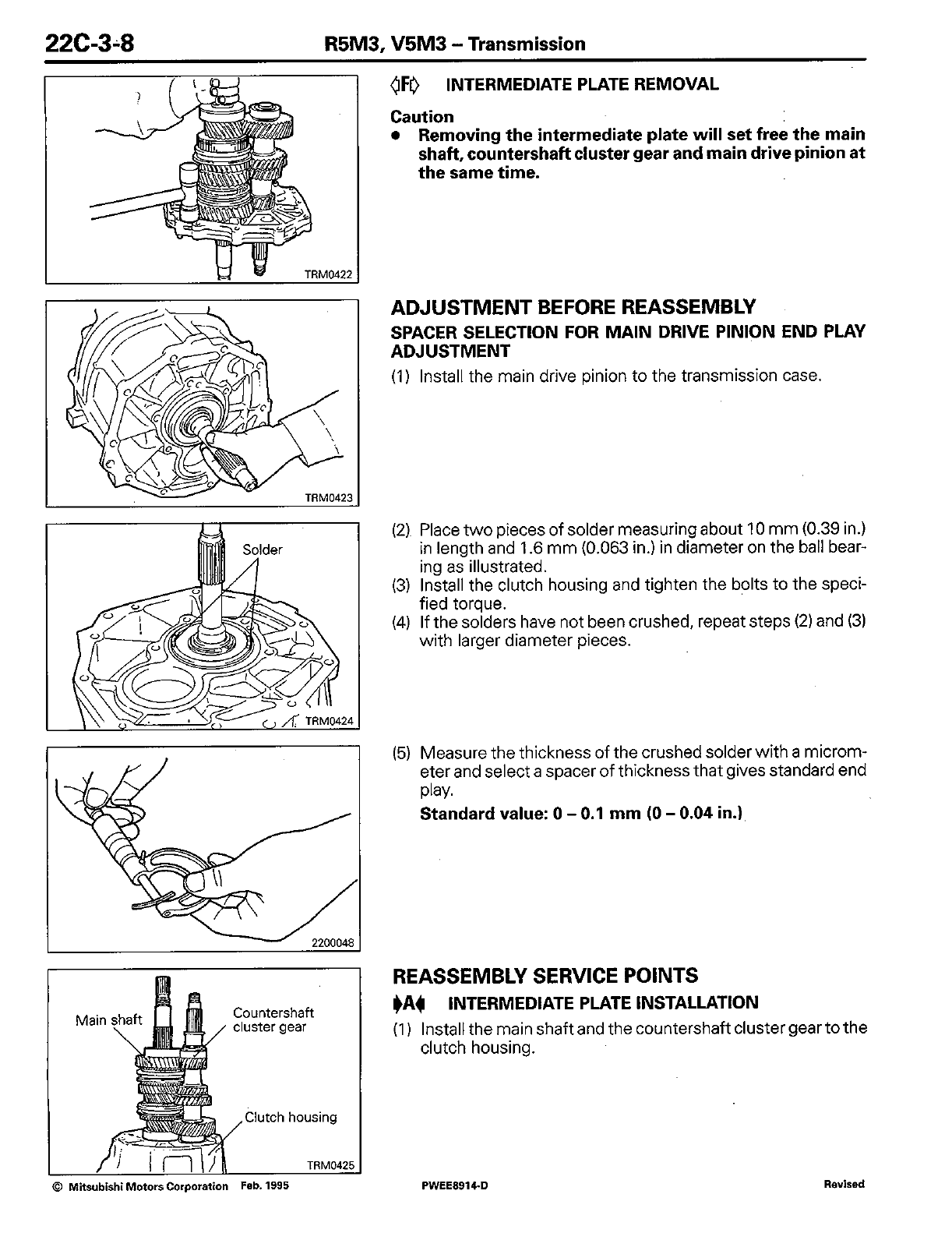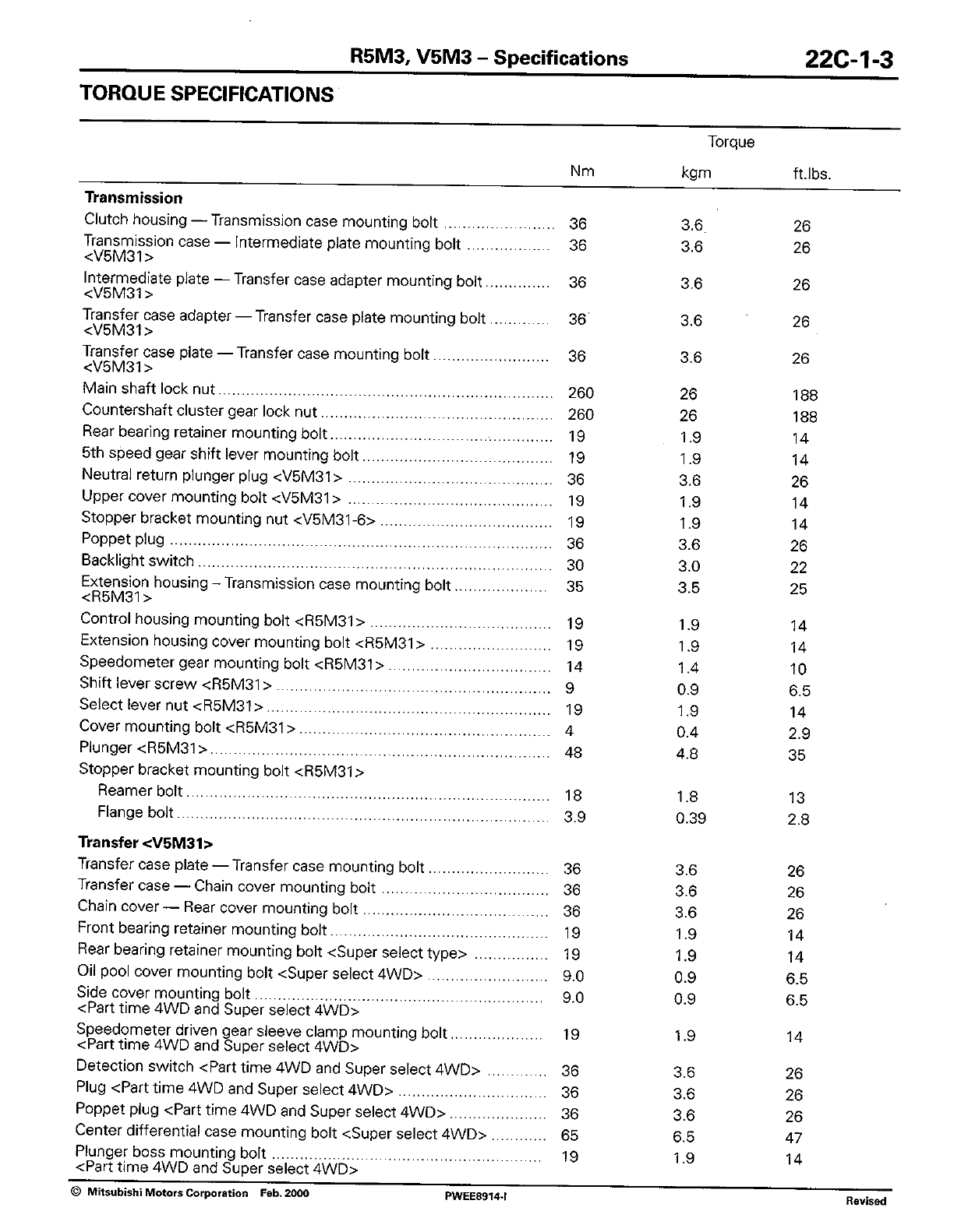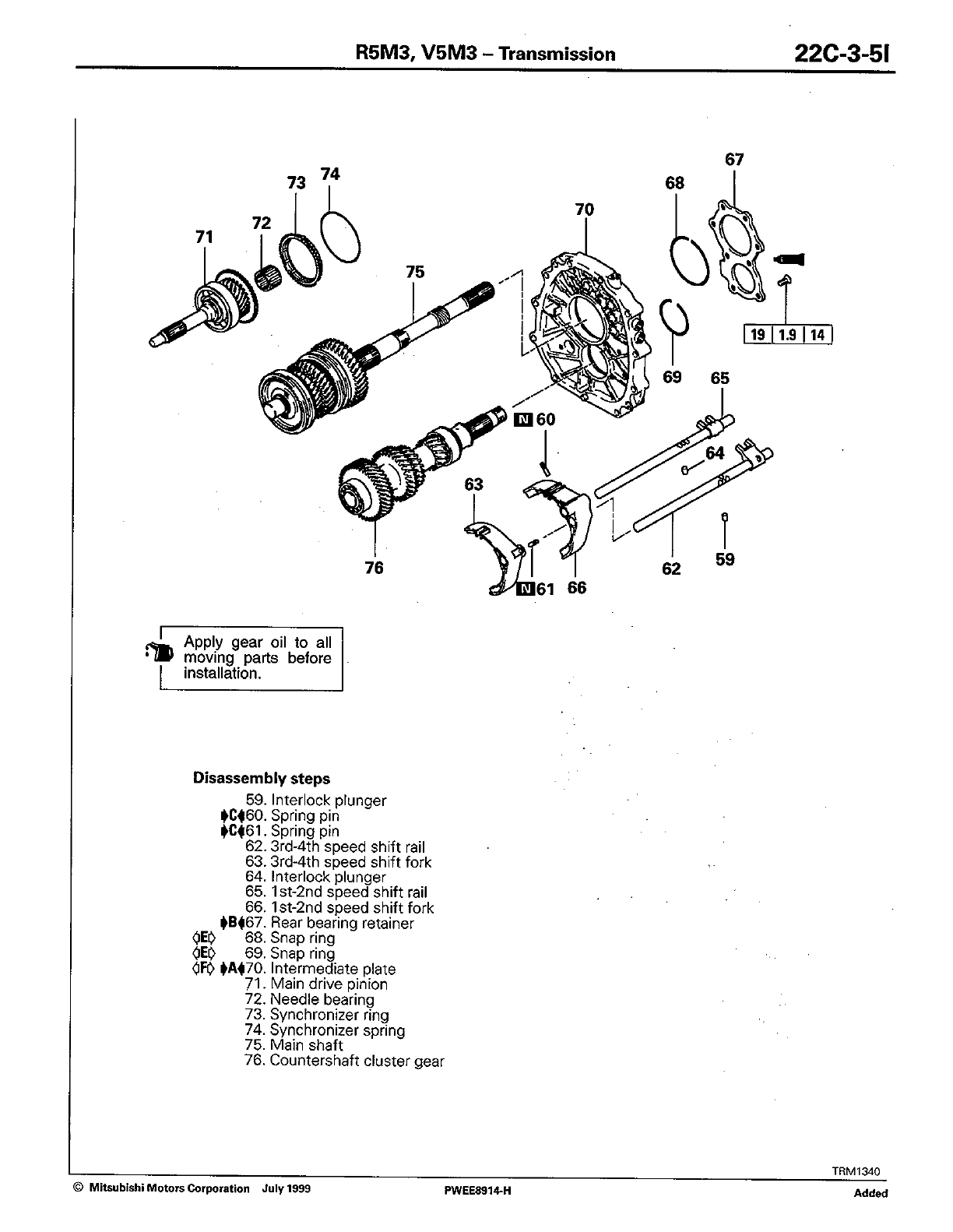 Mitsubishi Motors Automobile R5M3 Users Manual TRANSMISSION Workshop FR M/T (W E)