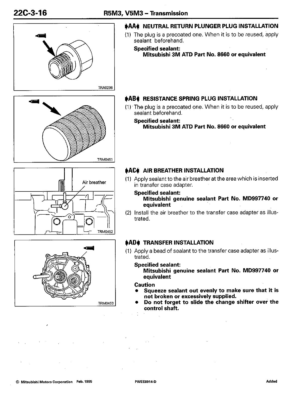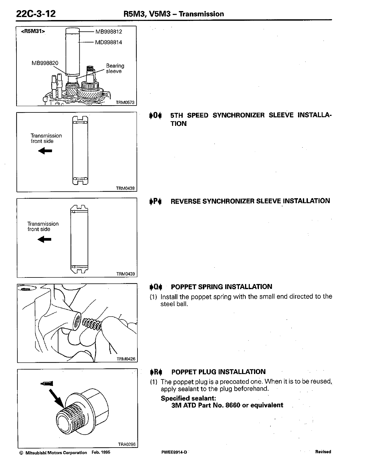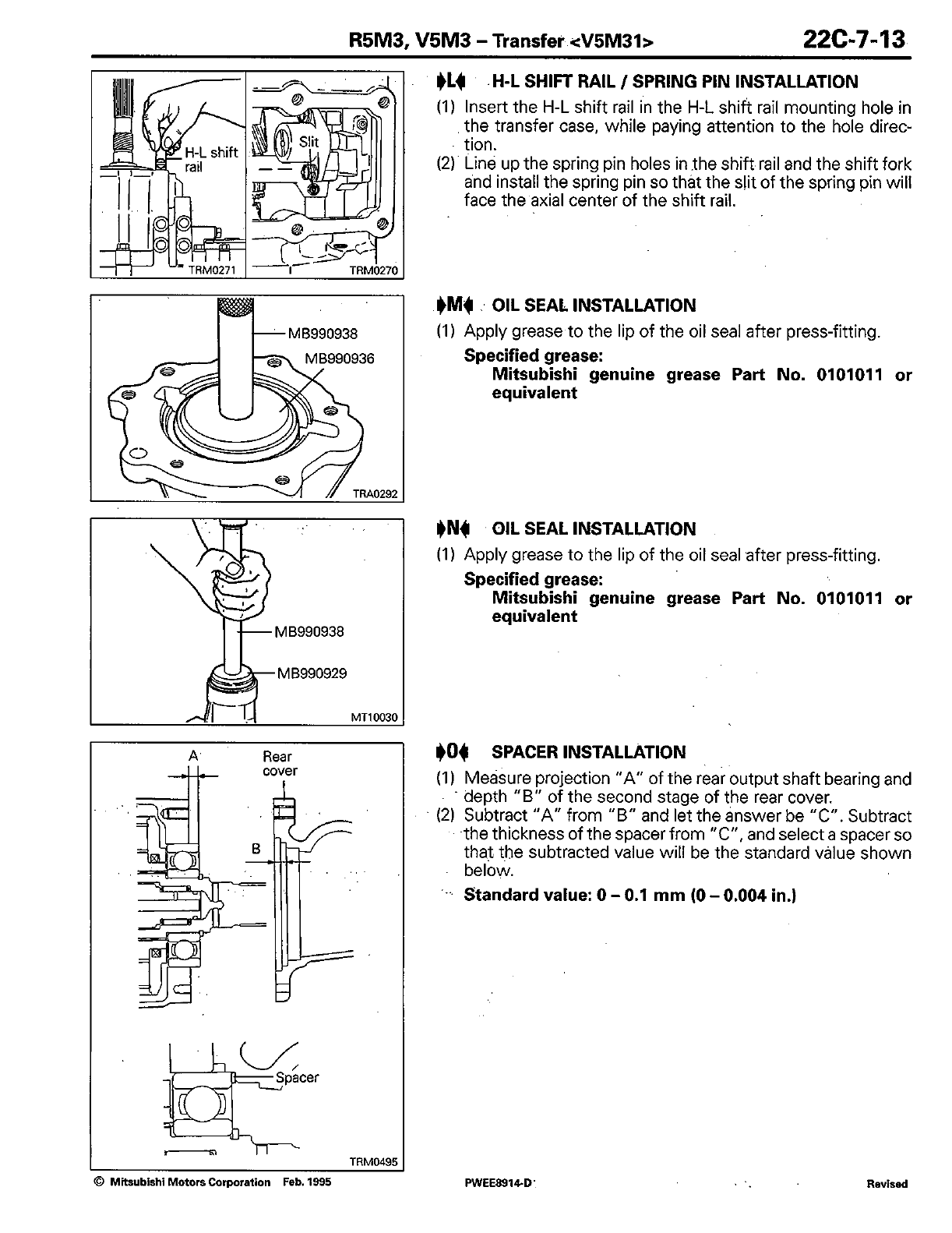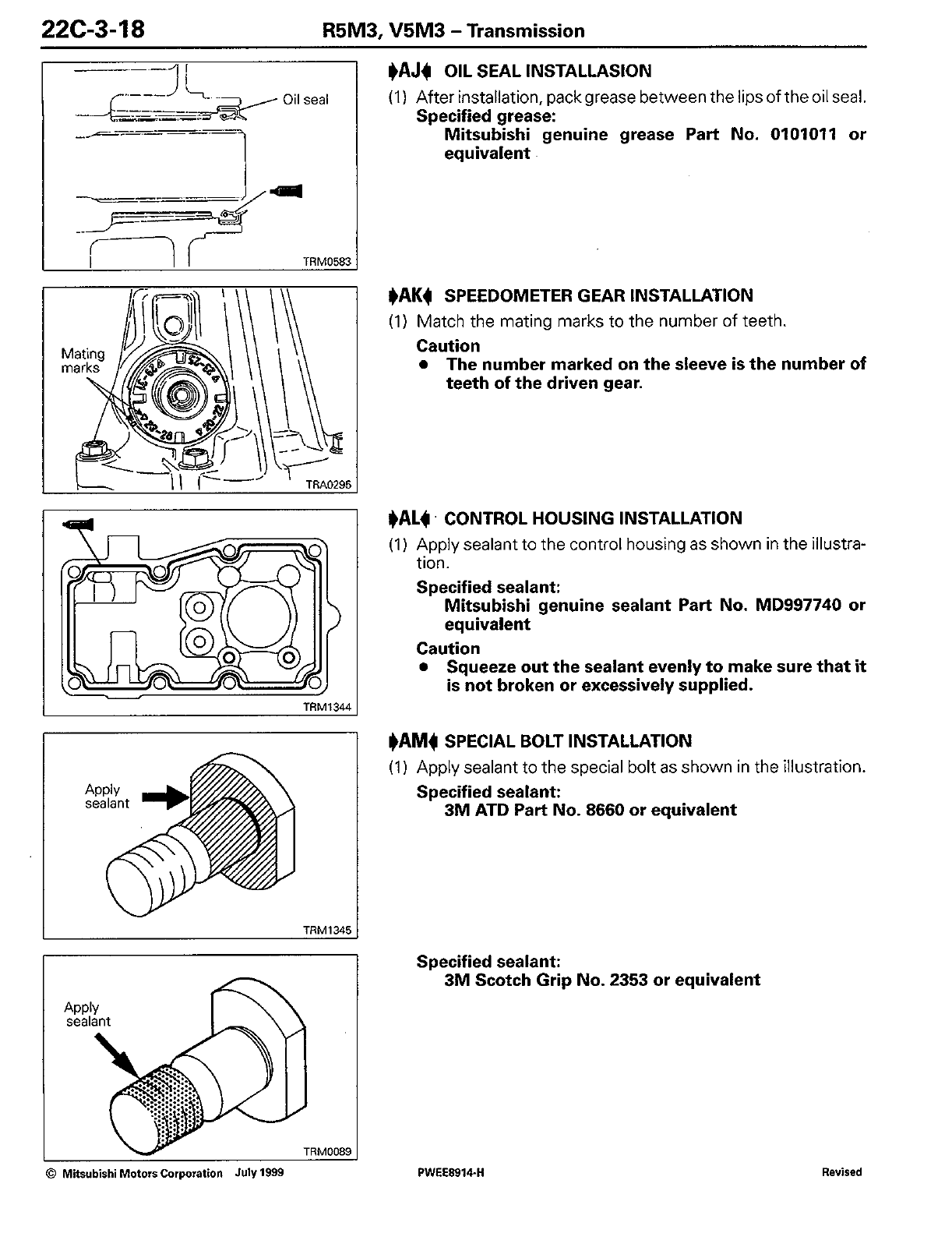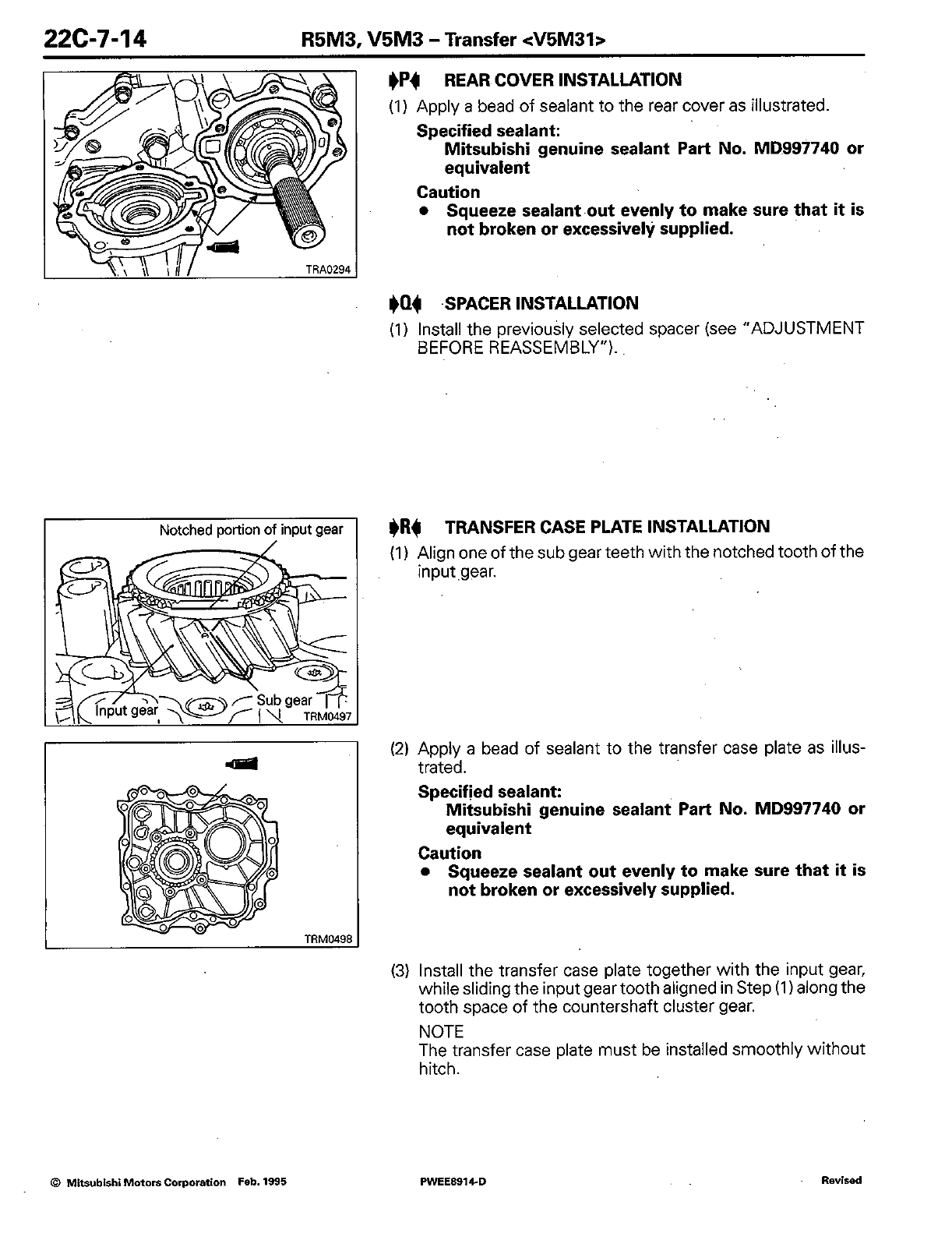 Mitsubishi Motors Automobile R5M3 Users Manual TRANSMISSION Workshop FR M/T (W E)