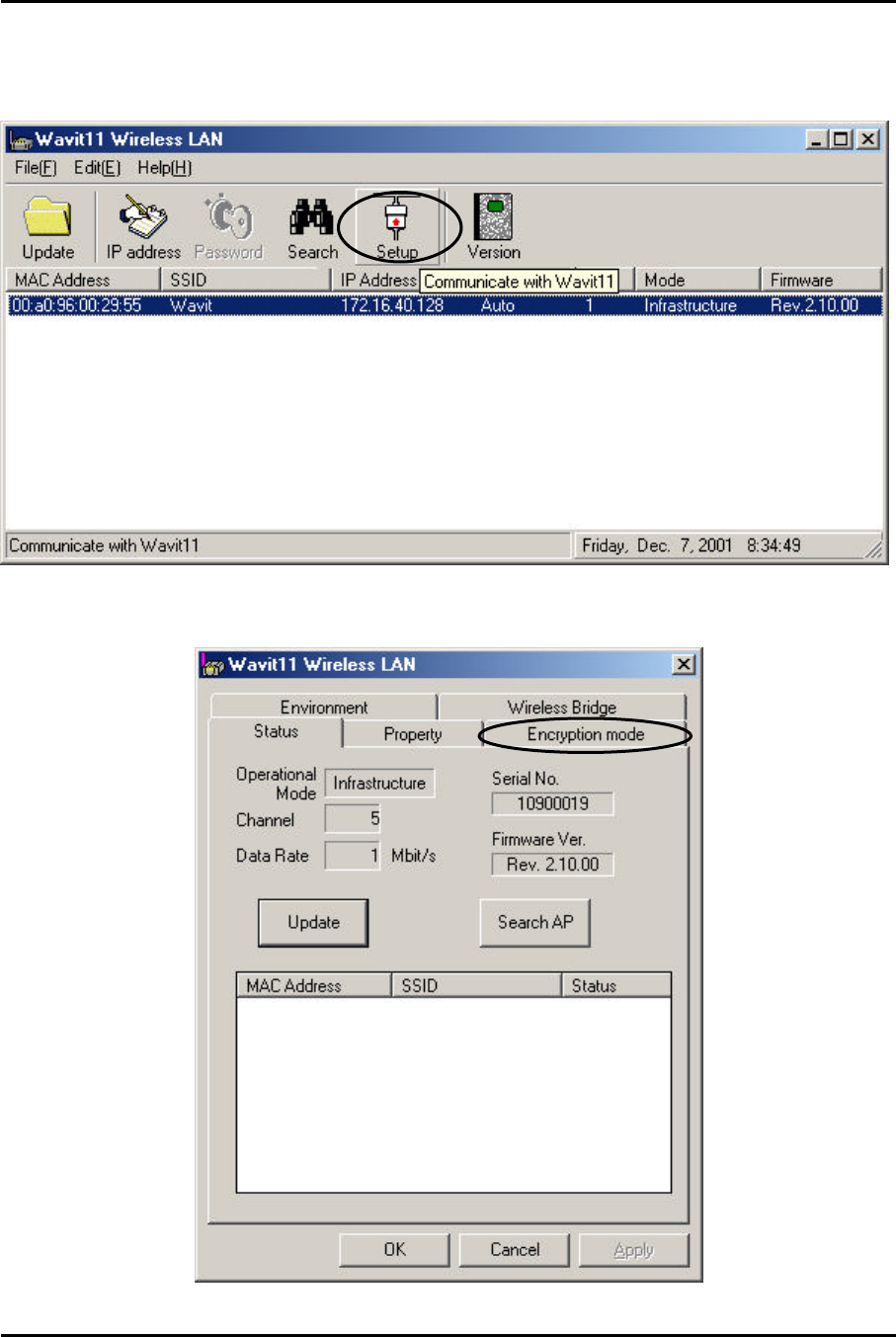[STEP1] Click the “Setup” in the “Wavit11 Wireless LAN” window.