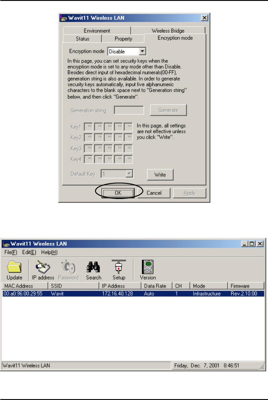 [STEP6] After returning to the “Wavit11 Wireless LAN” window, end