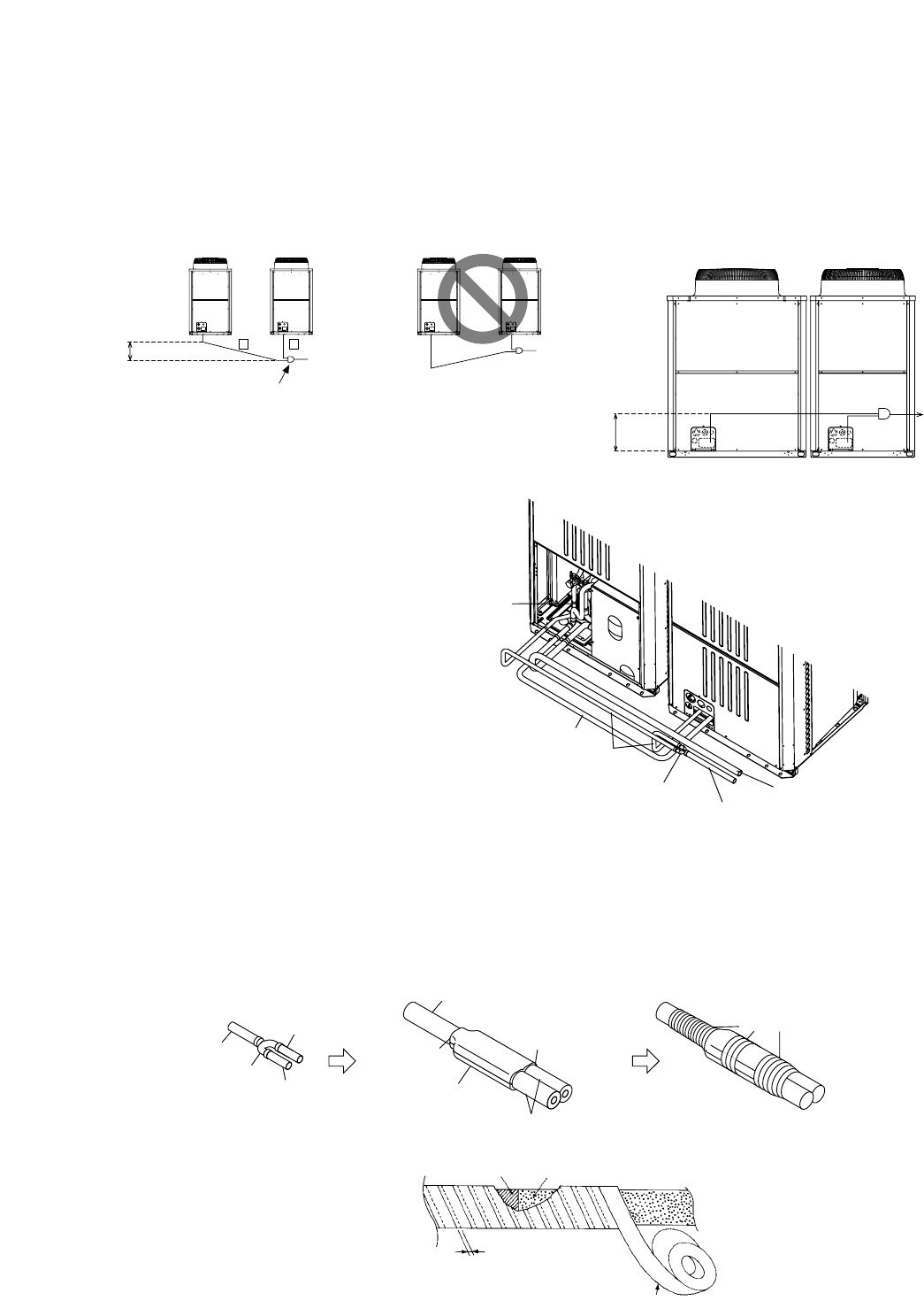 pipe has at least 500 mm [19-11/16 in] of straight section. (The section of the field-supplied pipe that connects to the twinning