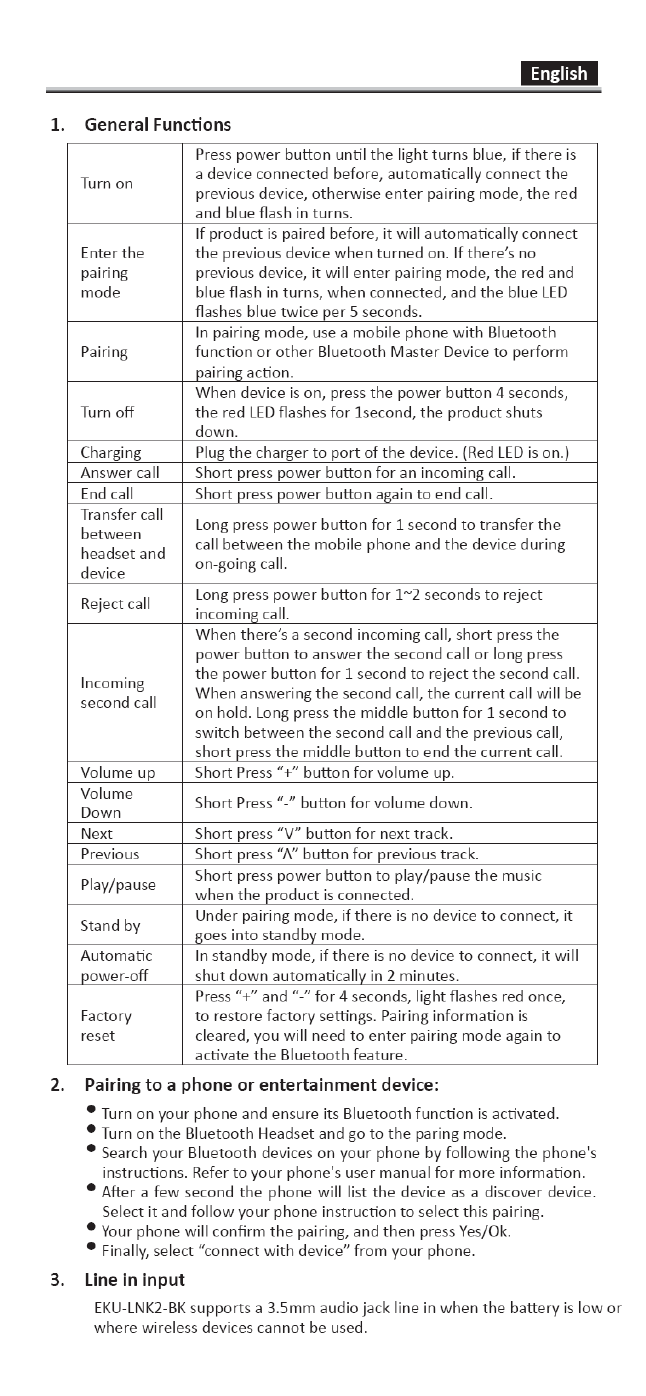 Mizco EKU-LNK2 ECKO Link2 Bluetooth Headphone User Manual