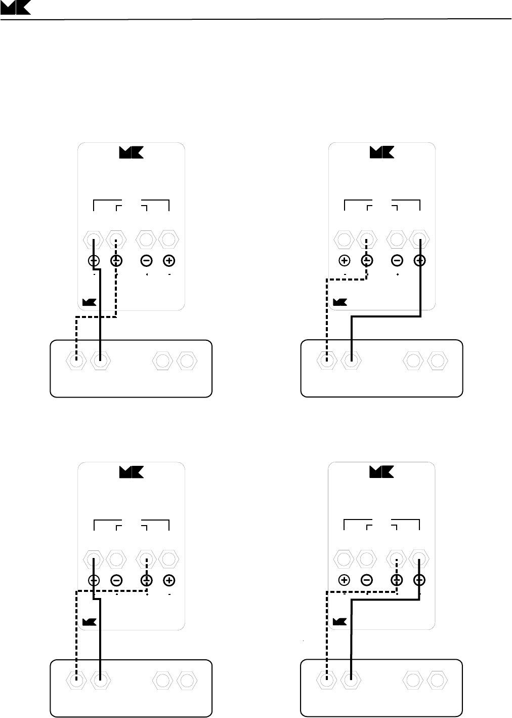 Your M&K Satellites are not designed for bi-wiring. Do not use the four input terminals to bi-wire your Satellites,