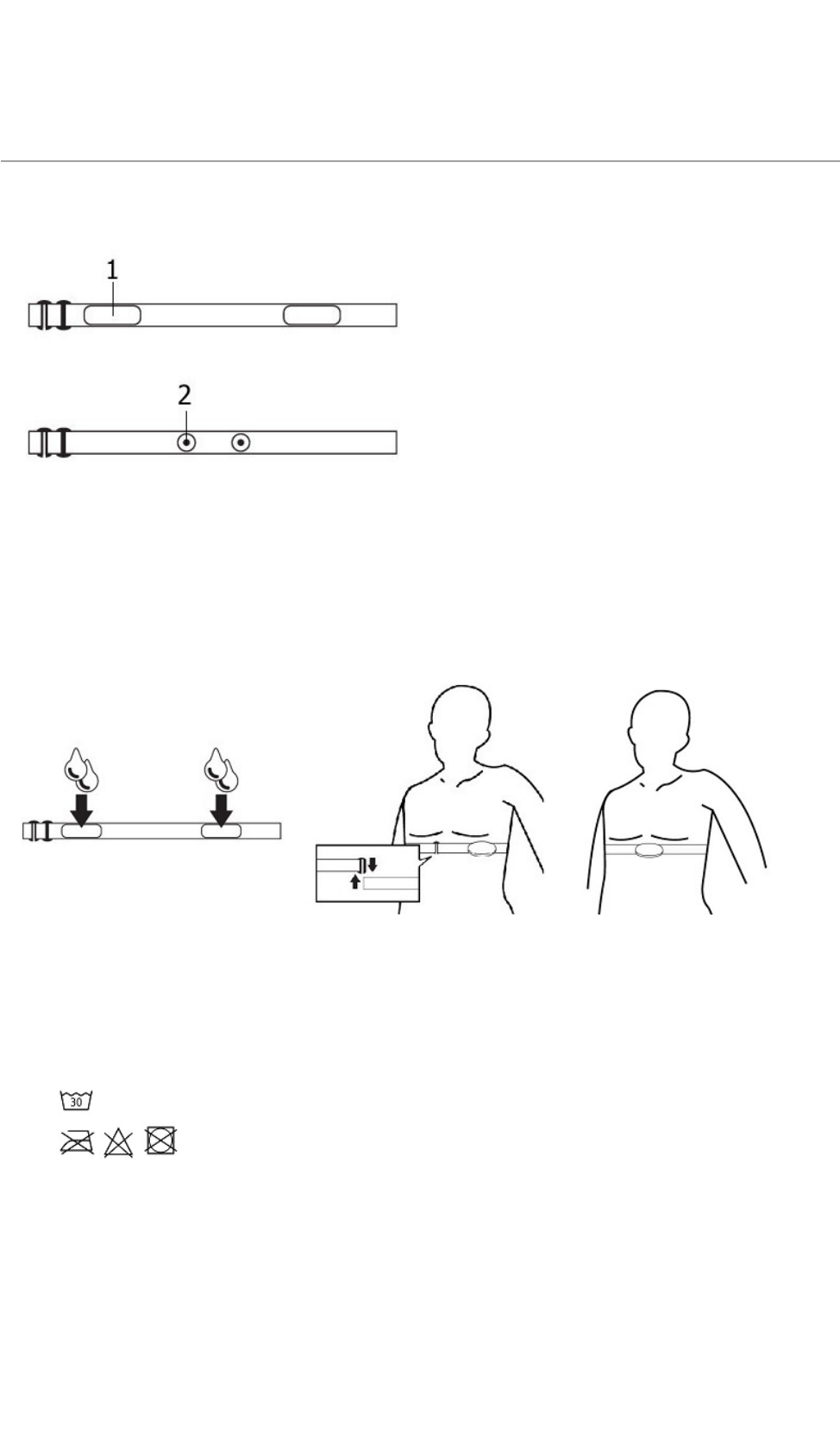 - Before washing the device, detach the main part of Heart Rate Monitor where electrodes are located. This part is not washable.