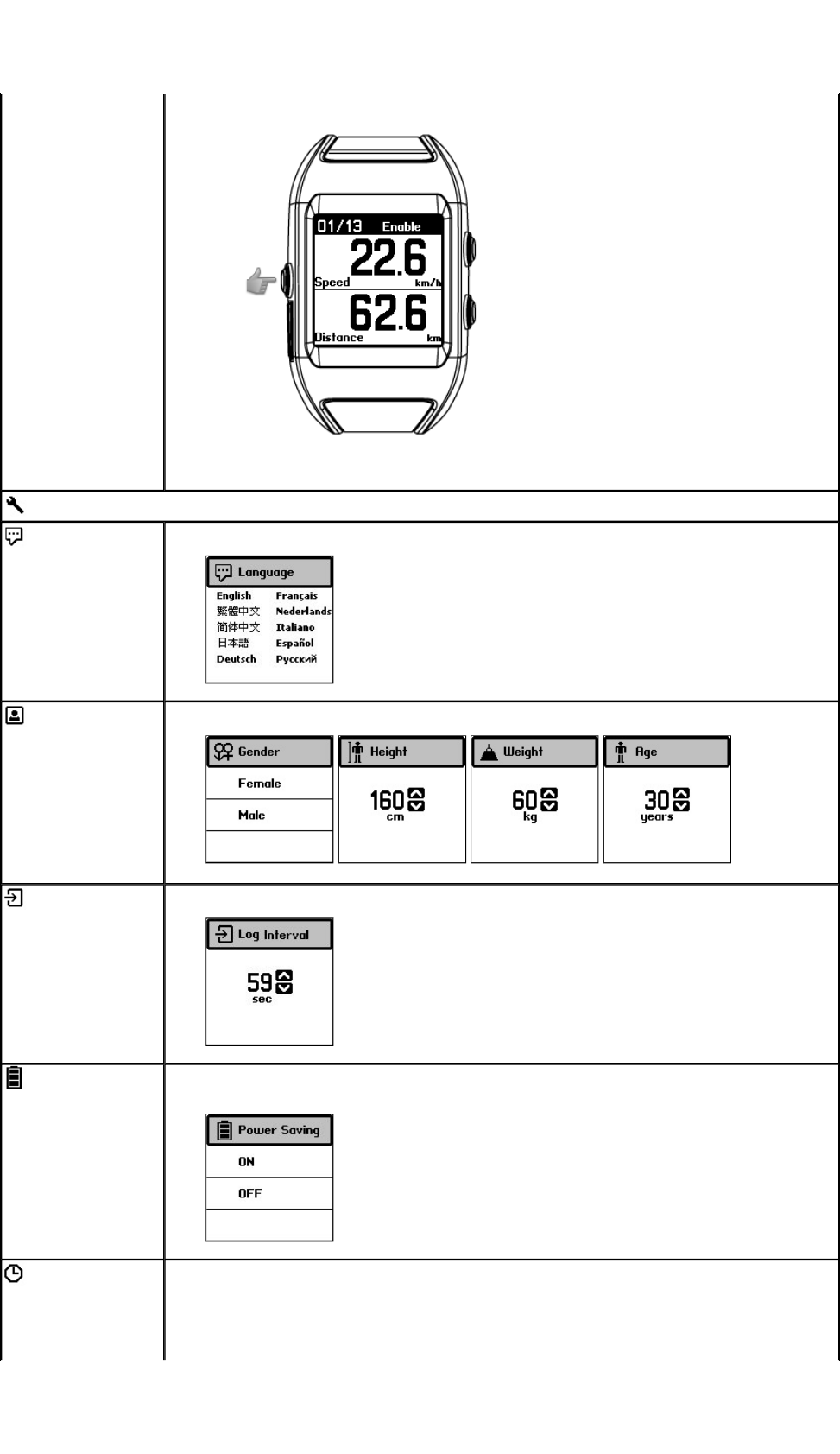 This allows you to choose a sports mode, or turn off the GPS device.