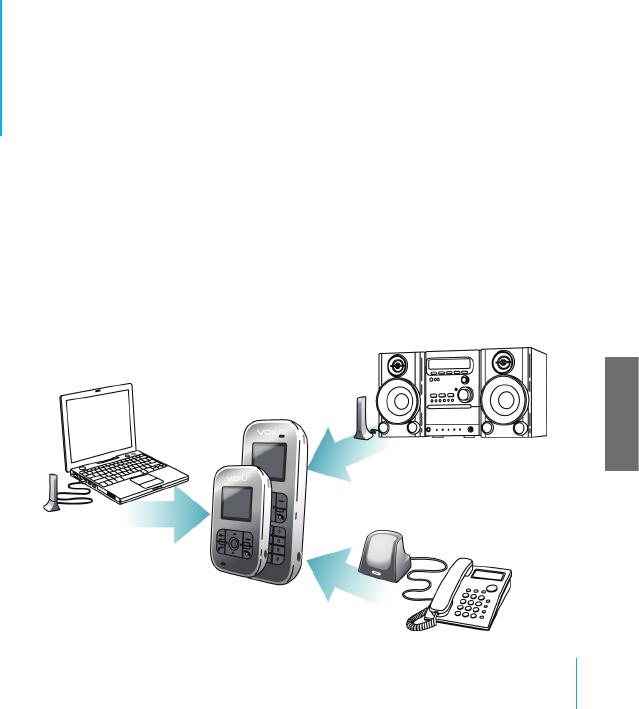 Message (IM) messages and listen to music from PC via Voiis Dongle.