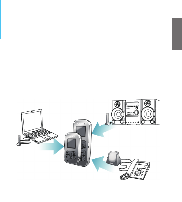 Message (IM) messages and listen to music from PC via Voiis Dongle.
