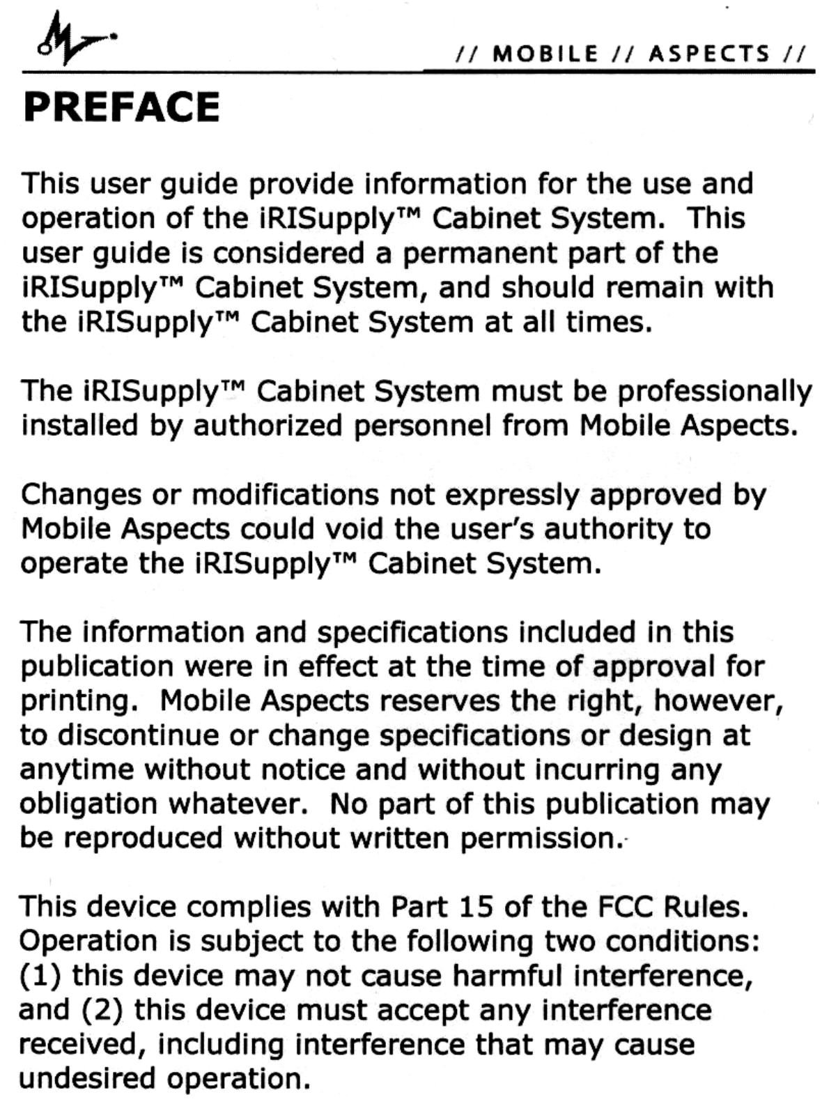 Mobile Aspects IS100 Low Power Communication Device Transmitter User Manual Preface jpg