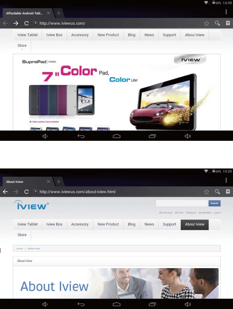 desktop (below). The default desktop is consisted of quick search bar, status bar,