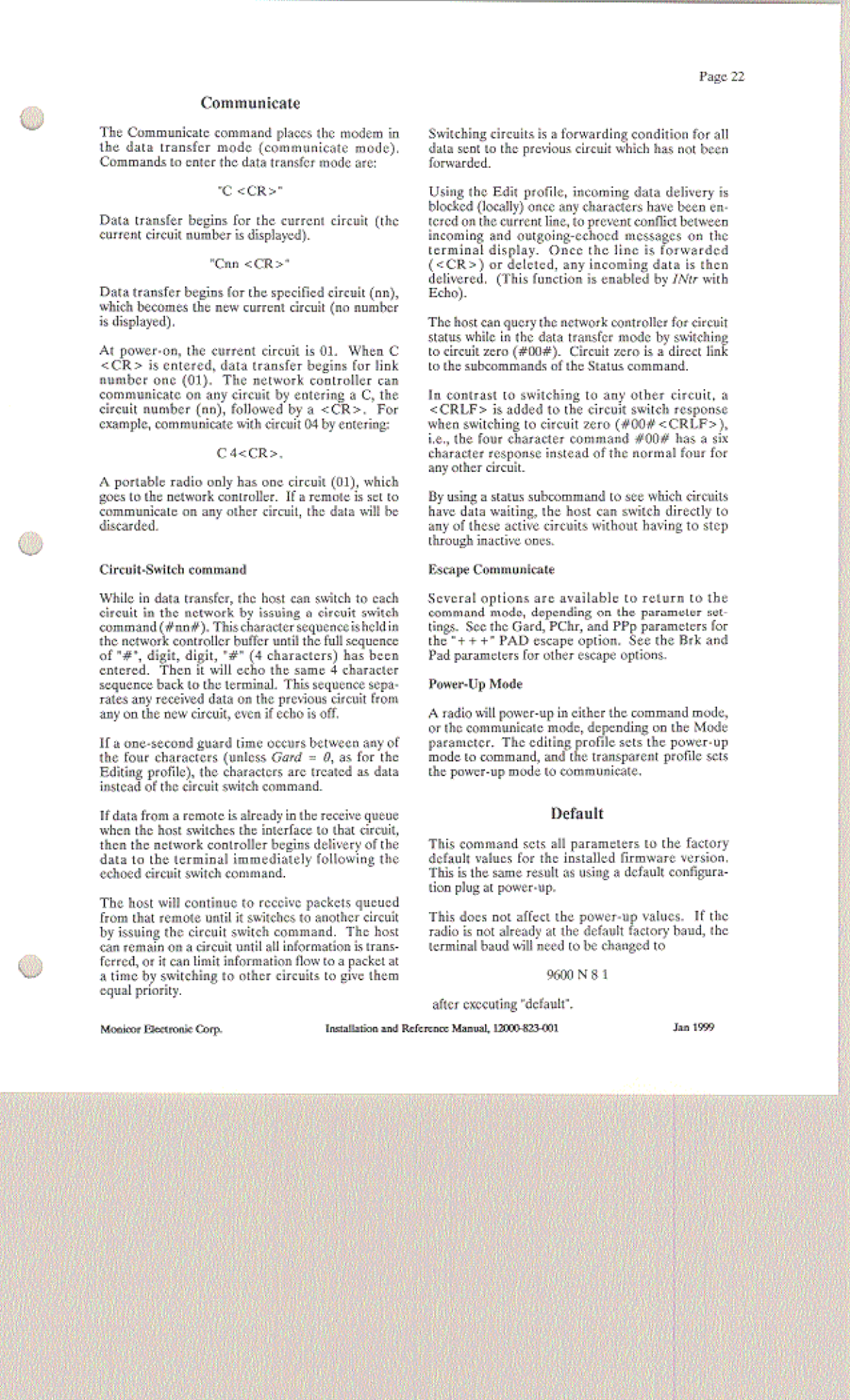 Monicor Electronic Corporation RF MODEM USERS MANUAL