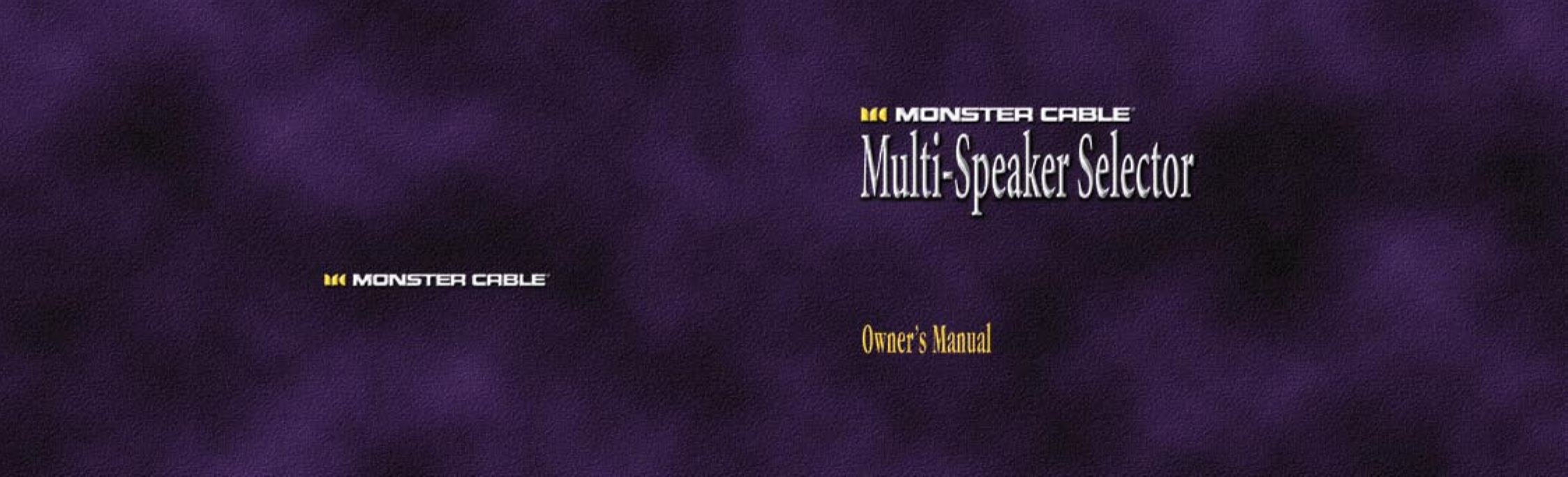 This owner’s manual describes how to easily operate and maintain your Monster Multi-Speaker Selector.