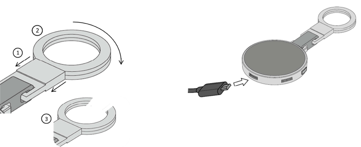 ring to the left or right (2) until it opens up (3). Now attach the e-Tag