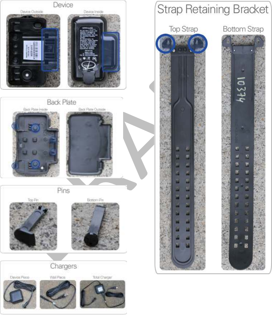 The device should be stored with the strap and back plate positioned as if the device is on an offender.