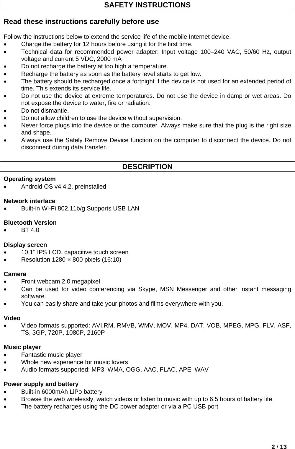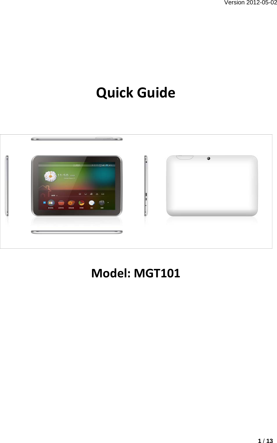 Motic China Group MGT101 10.1 inch Quad core capacitive touch tablet User Manual MGT101 English x