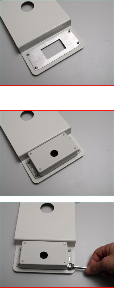7.3 TURN OVER THE MOUNTING PLATE ASSEMBLY, REMOVE THE ADHESIVE COVER PAPER FROM THE BACK OF