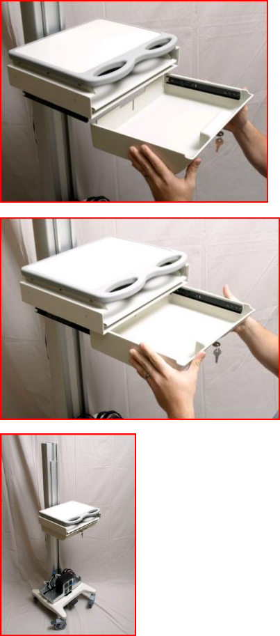 3.1 REMOVE THE DRAWERS BY PRESSING THE PLASTIC RELEASE TABS ON THE INSIDE OF THE DRAWER GLIDE