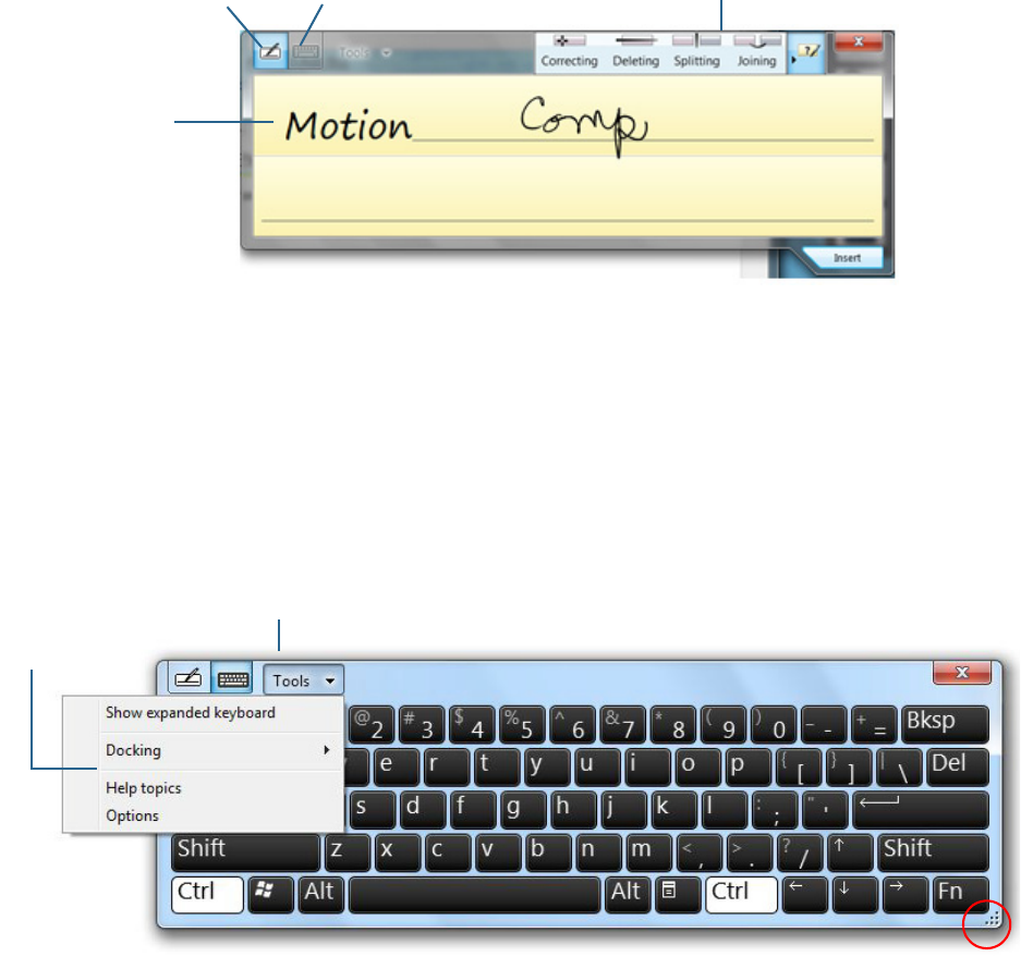 Tablet PC input panel 28, 29
