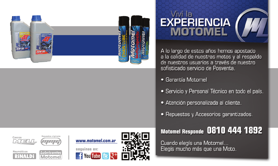 Su Distribuidor/Servicio Técnico autorizado Motomel podrá facilitarle más información y está equipado para