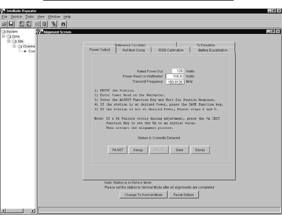 TUNE-UP PROCEDURE - Transmitter Power Output Alignment Screen