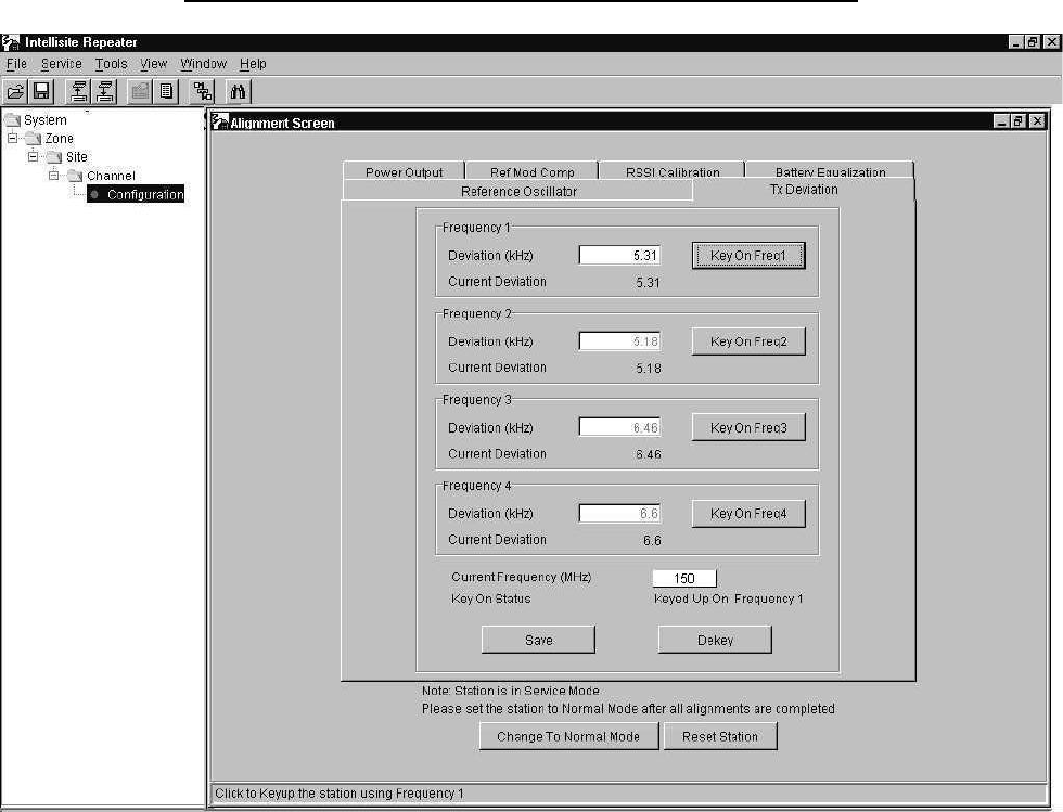 TUNE-UP PROCEDURE - Transmitter Deviation Alignment Screen